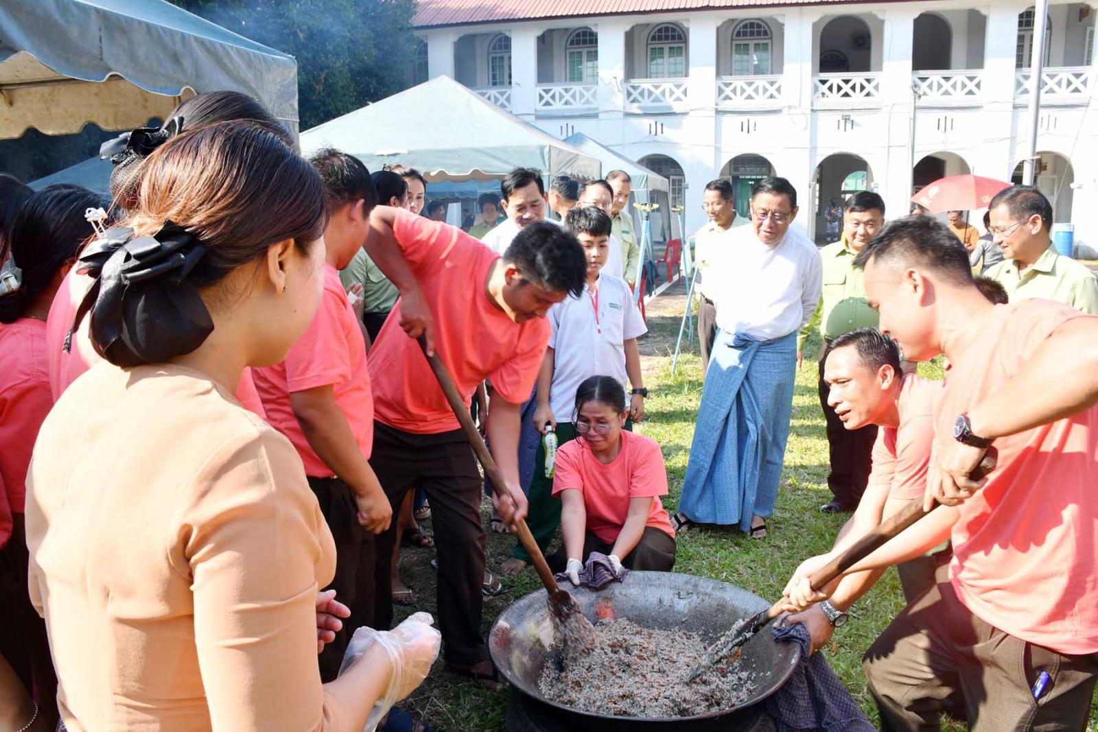 ထမနဲထိုးပြိုင်ပွဲတွင် အထွေထွေအုပ်ချုပ်ရေးဦးစီးဌာန၊ အမျိုးသမီးရေးရာ၊ မိခင်နှင့်ကလေးစောင့်ရှောက်မှုကြီးကြပ်ရေးအဖွဲ့၊ မိသားစုစည်းရုံးရေးနှင့် စည်းကမ်းထိန်းသိမ်းရေးအဖွဲ့များမှ ဌာနအကြီးအမှူးများနှင့် အရာထမ်း၊ အမှုထမ်းတို့က အုပ်စု (၇)အုပ်စုဖွဲ့၍ မြန်မာ့ရိုးရာထမနဲထိုးပြိုင်ပွဲကို တစ်ပျော်တစ်ပါး ပါဝင်ဆင်နွဲကြရာ တိုင်းဒေသကြီးဝန်ကြီးချုပ်နှင့် ဝန်ကြီးများက လှည့်လည်ကြည့်ရှုအားပေးခဲ့ကြသည်။
