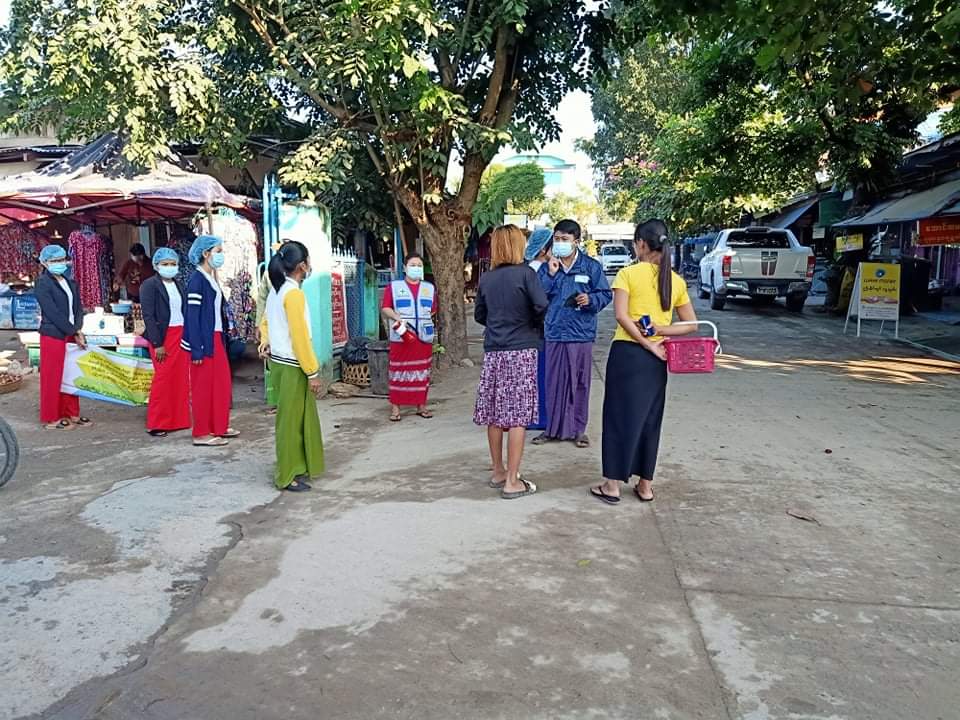 အဆိုပါဆောင်ရွက်မှုများအား ကျေးလက်ကျန်းမာရေး ဌာနမှ လက်ထောက်ကျန်းမာရေးမှူး ဒေါ်စောယုမာနှင့် ကျန်းမာရေးဝန်ထမ်းများက စျေးအတွင်းသို့ စျေးရောင်းသူများနှင့် စျေးဝယ်သူ များအား ကိုဗစ်- ၁၉ ရောဂါ ကြိုတင်ကာကွယ်ရေး လိုက်နာရမည့် အချက်များအား လက်ကိုင် အသံချဲ့စက်များဖြင့် နှိုးဆော်ပြီး စျေးအတွင်းသို့ mask campaign များပြုလုပ် ဆောင်ရွက်ခဲ့ ကြောင်း သိရသည်။