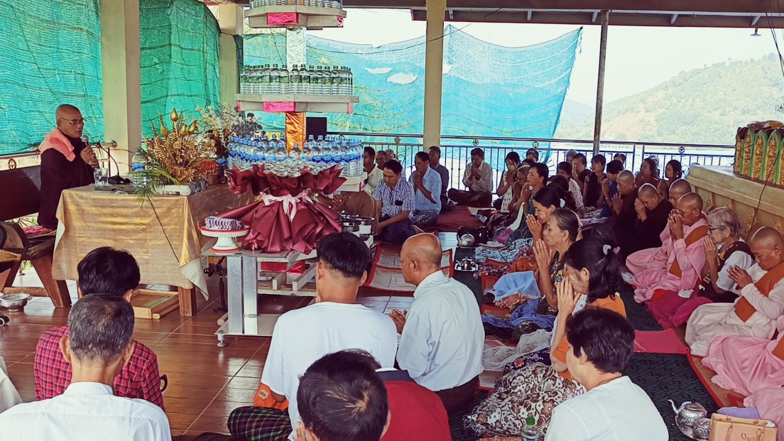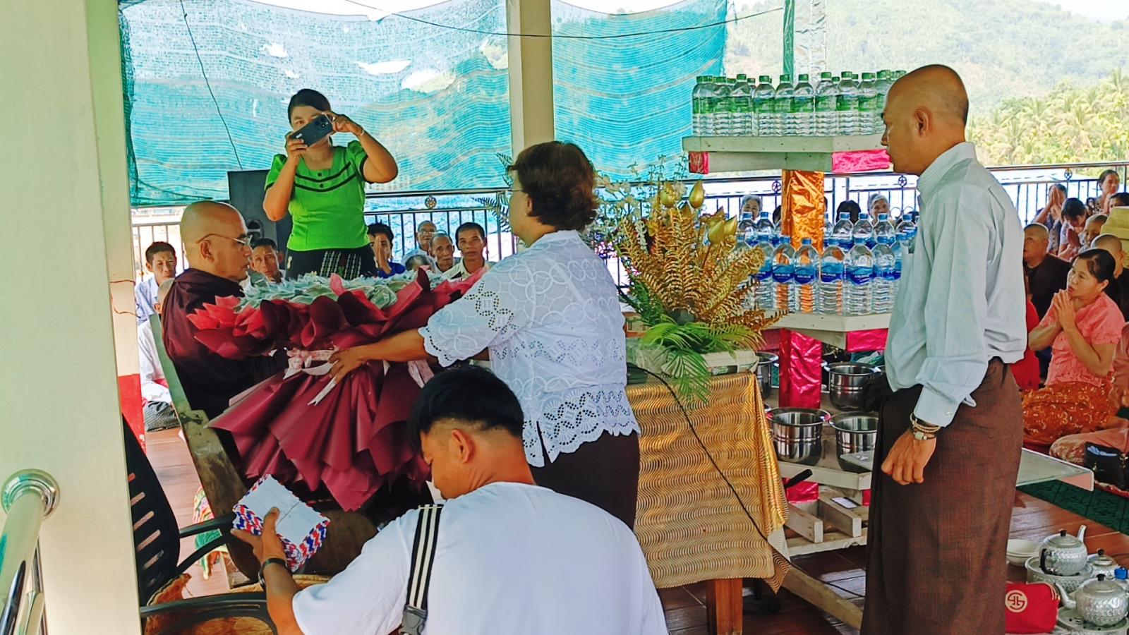 တနင်္သာရီတိုင်းဒေသကြီး မြိတ်ခရိုင် တနင်္သာရီမြို့၏ ကျက်သရေဆောင် ဇီဝဘိုးဘွားရိပ်သာကျောင်းတိုက်၌ (၅) ရက်တိုင်တိုင် ကျင်းပပြုလုပ်ခဲ့သည့် နေ့/ ညအသံမစဲ ပဋ္ဌာန်းသိမ်းအောင်ပွဲ အထိမ်းအမှတ်အခမ်းအနားကို (၁၃၈၆ခုနှစ်၊ တပို့တွဲလပြည့်ကျော်၁၁ရက်) ဖေဖော် ဝါရီလ ၂၃ ရက် နံနက် ၉ နာရီခွဲက အေးငြိမ်းချမ်းသာ ဘုရားတောင်ပေါ်ရှိ ကံမြင့်ဘုရားကျောင်းဆောင်အတွင်း၌ ကျင်းပပြုလုပ်ရာ အခမ်း အနားသို့ ဘိုးဘွားရိပ်သာကျောင်းတိုက်၏ ဦးစီးပဓာနဆရာတော် ဘဒ္ဒန္တသုန္ဒရနှင့် ပင့်သံဃာ (၂၃) ပါး၊ မတည်အလှူရှင်များနှင့် ဝေယျာဝစ္စအလှူရှင်များ၊ ဆွေတော် မျိုးတော်များ တက်ရောက်ခဲ့ကြပါသည်။