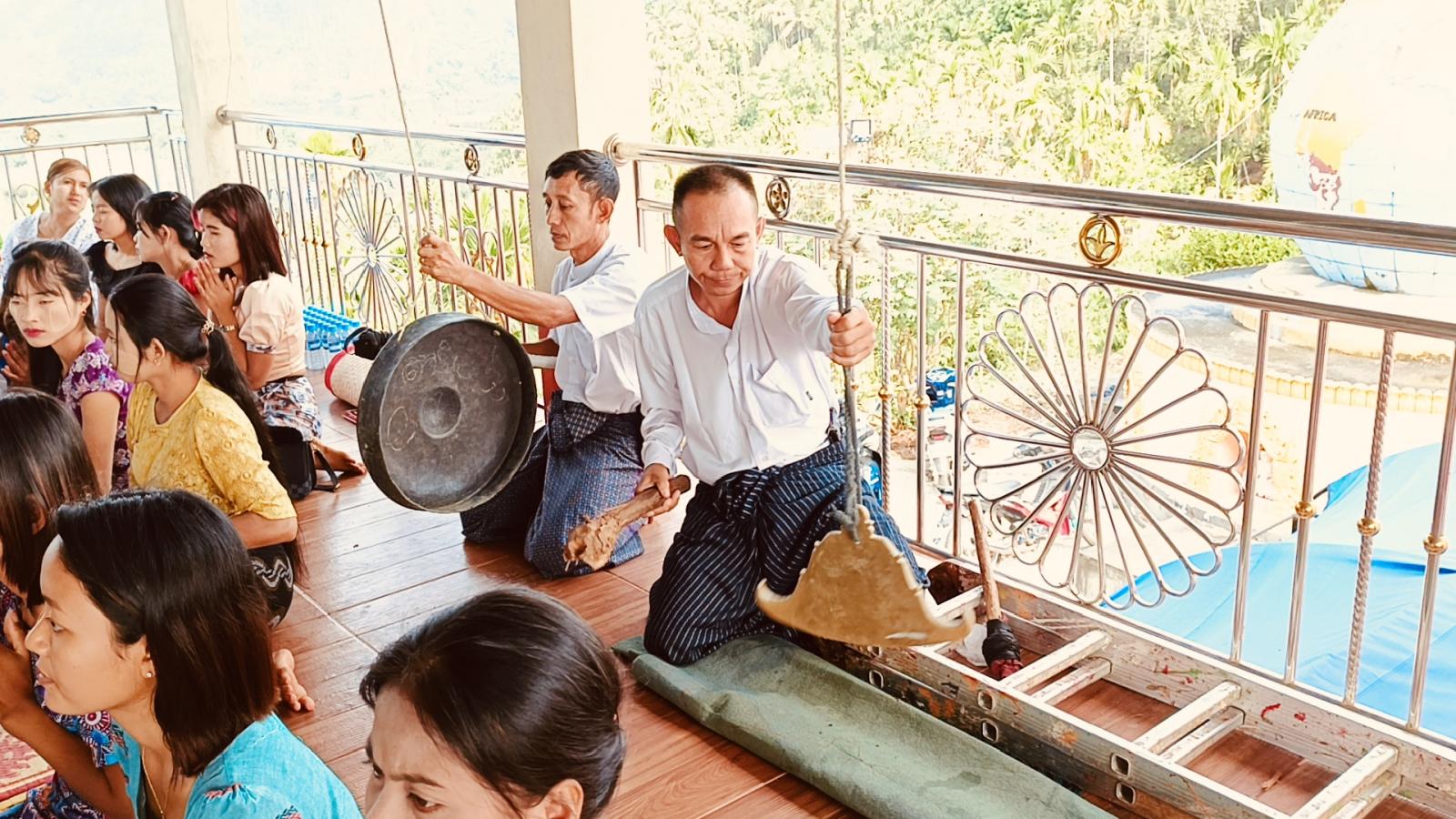ရှေးဦးစွာ ဆရာတော်သံဃာတော်များနှင့် လူပရိတ်သတ်အပေါင်းတို့က နမောတဿ (၃) ကြိမ် ဘုရားကန်တော့ဖွင့်လှစ်၍ နေ့/ ညအသံမစဲ မဟာပဋ္ဌာန်းရွတ်ဖတ်ပူဇော်ပွဲအောင်မြင်ခြင်း အထိမ်းအမှတ်အဖြစ် ကြေးစည်နှင့် မောင်းကြီးကို (၂၄) ချက်စီ ပြိုင်တူတီးကာ သာဓုခေါ်ဆိုခဲ့ကြသည်။
