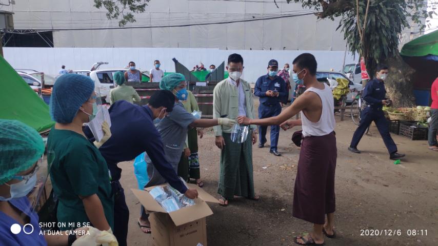 ရန်ကုန်တိုင်းဒေသကြီး၊ဒဂုံမြို့နယ်အတွင်း၌ ကိုဗစ်-၁၉ရောဂါကို ထိရောက်စွာ ကာကွယ် ထိန်းချုပ် နိုင်ရေးအတွက် ဈေးရောင်း၊ဈေးဝယ်ပြည်သူများ နှာခေါင်းစည်း(Mask)နှင့် မျက်နှာ အကာ (Face shield) တပ်ဆင်သွားလာကြရန် အသိ ပညာပေး Mask Campaign ဆောင်ရွက်ခြင်းကို ယမန်နေ့နံနက်ပိုင်းက ဘုရားကြီးရပ်ကွက်ရှိ အခွန်လွတ်ဈေး ဦးဝိစာရ ရပ်ကွက်ရှိ ဒဂုံရိပ်သာဈေး ယောမင်းကြီးရပ်ကွက်ရှိ ဗိုလ်ရာညွန့်လမ်းတို့တွင် ဆောင်ရွက်ခဲ့ ကြောင်း သိရသည်။
