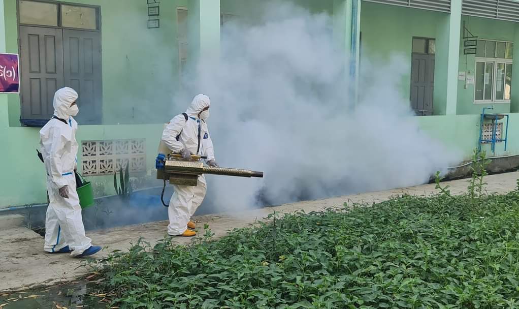 ထိုသို့ဆောင်ရွက်ရာတွင် ရွှေပေါက်ကံမြို့သစ် ရပ်ကွက်အုပ်ရေးမှူးရုံး၊ ရုံးအဖွဲ့မှူး အ.ထ.က(ခွဲ) လ(၁၀) Quarantine Centre တာဝန်ခံ ဦးနိုင်ဝင်း ကြီးကြပ်မှုဖြင့် ခြင်ဆေးဖျန်းသူ များက PPE ဝတ်စုံများကို စနစ်တကျ ဝတ်ဆင်၍ ခြင်များ ခိုအောင်းနေနိုင်သည့် စာသင်ခန်းဟောင်းများ၊ ဂိုထောင်များ၊ ရေချိုခန်းများ၊ အိမ်သာများနှင့် ကျောင်းဝန်း အတွင်း/အပြင်များကို ခြင်ဆေးဖျန်းခြင်း လုပ်ငန်းများ ဆောင်ရွက်ပေးခဲ့ကြောင်း သိရသည်။
