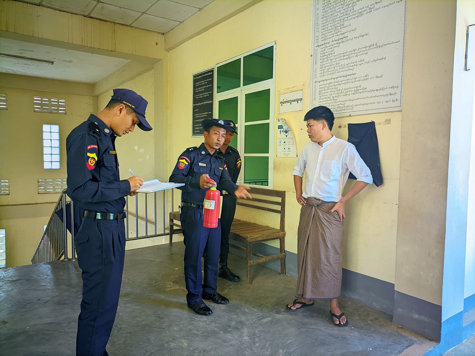 ထိုသို့ဆောင်ရွက်ရာတွင် သရက်ချောင်းမြို့နယ်၊ မီးသတ်ဦးစီးဌာနမှ ဦးစီးအရာရှိ ဦးသက်နိုင်လွင် ဦးဆောင်၍ မီးသတ်တပ်ဖွဲ့ဝင်များက မြို့နယ်အတွင်းရှိ ဌာနဆိုင်ရာရုံးများအား မီးဘေးအန္တရာယ် ကင်းရှင်းစေရန်အတွက် လျှပ်စစ်ဝိုင်ယာများနှင့် လျှပ်စစ်ပစ္စည်းများ၊ မီးဖိုများ၊ ရေအိုး/ ရေစည်/ ရေကန်များ စစ်ဆေးခြင်း၊ မီးချိတ်၊ မီးကပ်၊ ရေပုံး၊ သဲပုံးများ၊ မီးသတ်ဆေးဘူးများထားရှိရန်၊ ဖယောင်းတိုင်မီး၊ ခြင်ဆေးမီး၊ မီးဖိုမီးများအား စနစ်တကျ ငြှိမ်းသတ်ကြရန်ပြောကြားခဲ့ပြီးနောက် မီးသတ်ဆေးဘူးအသုံးပြုနည်းနှင့် ကိုင်တွယ်နည်းများကို ဌာနဆိုင်ရာ ဝန်ထမ်းများအား လက်တွေ့သင်ကြားပေးခဲ့ကြောင်း မြို့နယ်မီးသတ်ဦးစီးဌာန ဦးစီးအရာရှိ ဦးသက်နိုင်လွင်ထံမှ သိရသည်။