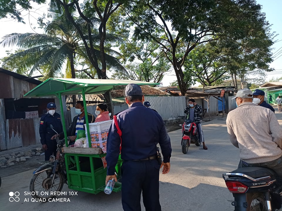 ထိုသို့ဆောင်ရွက်ရာတွင် ယနေ့နံနက် (၈) နာရီအချိန်က မြဝတီမြို့အမှတ်(၁) ရပ်ကွက်ရှိ သဇင်လမ်းထောင့်နှင့် သောင်ရင်းဈေးတွင် ပြည်သူများအား နှာခေါင်းစည်း မဖြစ်မနေ တပ်ဆင်ရေးအတွက် စည်းရုံးလှုံ့ဆော်ခြင်းများဆောင်ရွက်ခဲ့ပြီး နှာခေါင်းစည်းများ ဖြန့်ဝေ ပေးခြင်းနှင့် တပ်ဆင်စေခြင်းများကို ဆောင်ရွက်ခဲ့ကာ နှာခေါင်းစည်းများအား အခမဲ့ဖြန့်ဝေ ပေးခဲ့ကြောင်း သိရသည်။