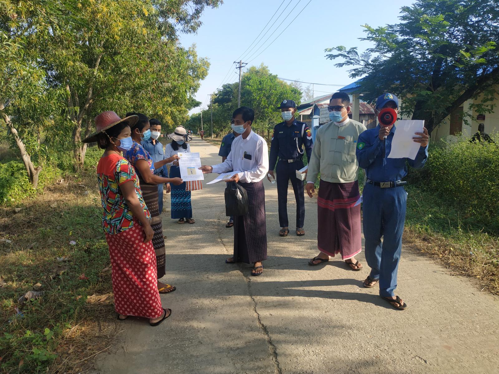 ထိုသို့ဆောင်ရွက်ရာတွင် မြို့နယ်ကိုဗစ်-၁၉ရောဂါ ကာကွယ်ထိန်းချုပ်ရေးနှင့် အရေးပေါ်တုံ့ပြန်ရေး ကော်မတီဥက္ကဋ္ဌ မြို့အုပ်ရေးမှူး ဦးရဲဝင့်ထွန်း ဦးဆောင်၍ ကော်မတီအဖွဲ့ဝင်များ၊ ဌာနဆိုင်ရာများ၊ မီးသတ်တပ်ဖွဲ့ဝင်များ၊ စည်ပင်သာယာရေးအဖွဲ့များ ပူးပေါင်းကာ လမ်းသွားလမ်းလာ ပြည်သူများနှင့် စျေးရောင်း/စျေးဝယ် ပြည်သူများအား Mask များ အခမဲ့ဖြန့်ဝေပေးခြင်း၊ ကျန်းမာရေးနှင့် အားကစားဝန်ကြီးဌာန၏ လမ်းညွန်ချက်များနှင့်အညီ လိုက်နာ ဆောင်ရွက်ကြရန် အသိပညာပေးခြင်း နှင့်အတူ မြို့ပြန်ကြားရေးနှင့် ပြည်သူ့ဆက်ဆံရေး ဦးစီးဌာနမှ ကိုဗစ်-၁၉ရောဂါ ကြိုတင်ကာကွယ်နိုင်ရေး လက်ကမ်းစာစောင်များ ဖြန့်ဝေပေးခဲ့ကြောင်း သိရသည်။