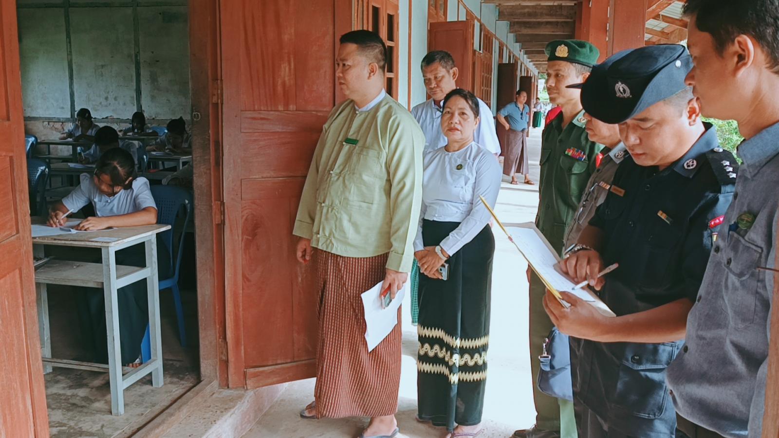 ထိုကဲ့သို့ Grade-5 နှင့် Grade-9 ကျောင်းသူ/ သားများက စာမေးပွဲများ အေးချမ်းစွာဖြေဆိုနေမှုကို မြို့နယ်စီမံအုပ်ချုပ်ရေးအဖွဲ့ဥက္ကဋ္ဌ မြို့နယ်အုပ်ချုပ်ရေးမှူး ဦးကျော်ခေါင်၊ အတွင်းရေးမှူး မြို့နယ်ရဲတပ်ဖွဲ့မှူး ရဲမှူးမင်းအောင်၊ အဖွဲ့ဝင် ဗိုလ်မှူးကျော်ဟန်စိုး၊ မြို့နယ်ပညာ ရေးမှူး ဒေါ်အေးအေး၊ မြို့နယ်မီးသတ်ဦးစီးဌာနမှူး ဦးဇင်ဦးချို၊ မြို့နယ်စည်ပင်သာယာရေးအဖွဲ့ အမှုဆောင်အရာရှိ ဦးခင်မောင်ဌေးနှင့် ရပ်ကွက်အုပ်ချုပ်ရေးမှူးတို့က လိုက်လံကြည့်ရှုအားပေးကြသည်။