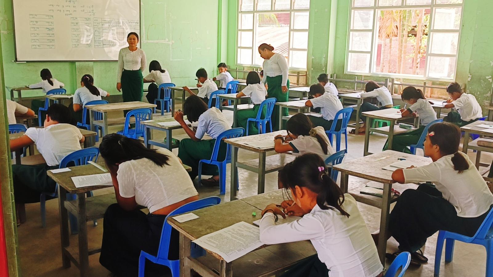 တနင်္သာရီတိုင်းဒေသကြီး တနင်္သာရီမြို့နယ်အတွင်း အခြေခံပညာကျောင်းများ၌ Grade-5 နှင့် Grade-9 ကျောင်းသူ/ သားများက ၂၀၂၄-၂၀၂၅ ပညာသင်နှစ်၏ တိုင်း/ ခရိုင်အဆင့် နှစ်ဆုံးစာမေးပွဲကို မတ်လ ၄ ရက်နေ့ ၉ နာရီအချိန်က အင်္ဂလိပ်စာဘာသာကို သက်ဆိုင် ရာ အခြေခံပညာ ကျောင်း စာစစ်ဌာနများ၌ အေးချမ်းစွာ ဖြေဆိုခဲ့ကြသည်။