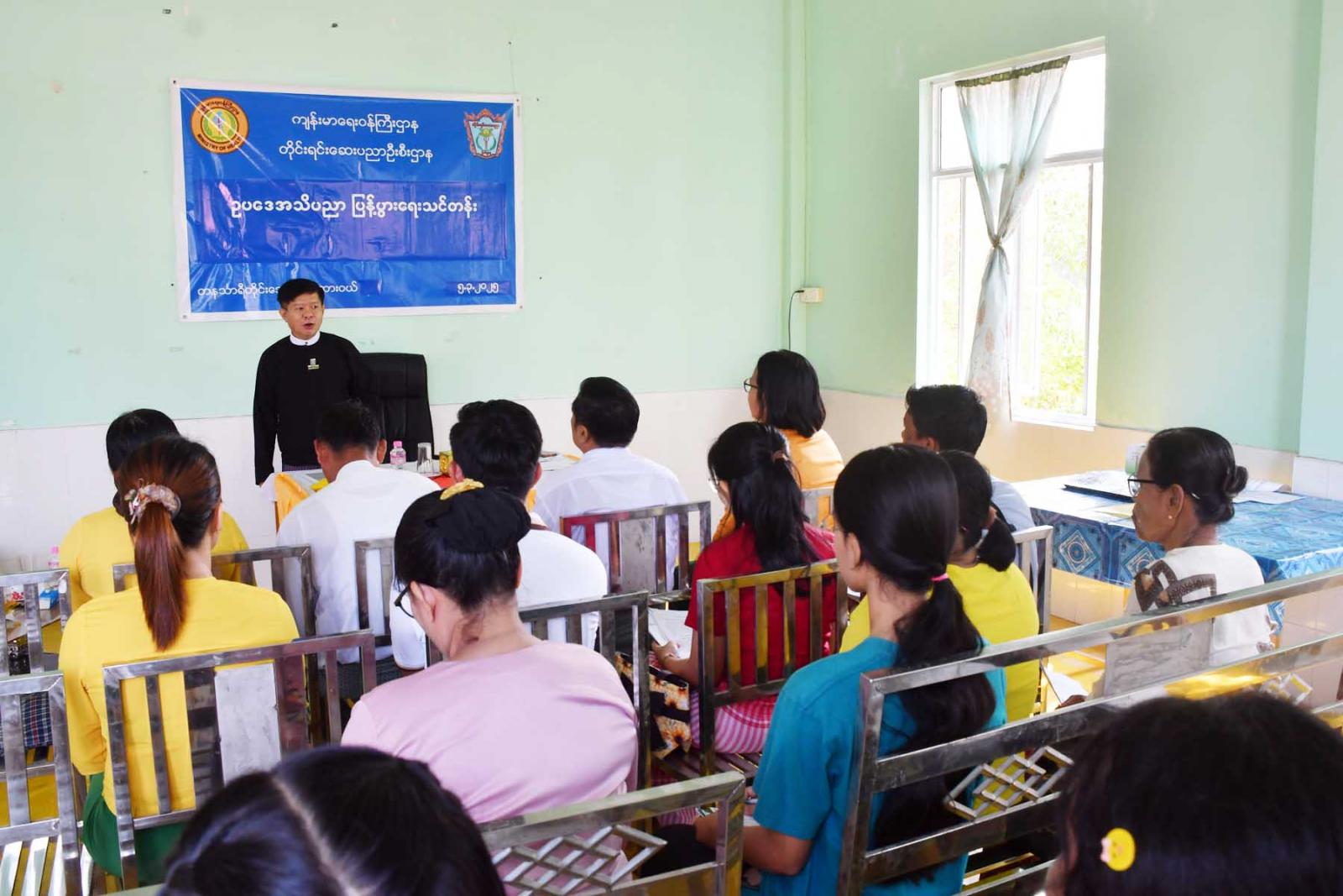 သင်တန်းတွင် ဒုတိယတိုင်းဒေသကြီး ဥပဒေအရာရှိ ဦးခင်မောင်မြင့်က တိုင်းရင်းဆေးဝါးဥပဒေ၊ မြန်မာနိုင်ငံတိုင်းရင်းဆေးကောင်စီဥပဒေ၊ မူးယစ်ဆေးဝါးနှင့်စိတ်ကိုပြောင်းလဲစေသော ဆေးဝါးများဆိုင်ရာဥပဒေနှင့် ပြစ်မှုပြစ်ဒဏ်များအကြောင်း၊ မြန်မာနိုင်ငံအစိုးရလျှို့ဝှက်ချက်အက်ဥပဒေနှင့် ပြစ်မှုပြစ်ဒဏ်များအကြောင်း၊ အကြမ်းဖက်မှုတိုက်ဖျက်ရေးဥပဒေနှင့် ပြစ်မှုပြစ်ဒဏ်များအကြောင်း စသည်တို့ကို ရှင်းလင်းဆွေးနွေးပို့ချသည်။