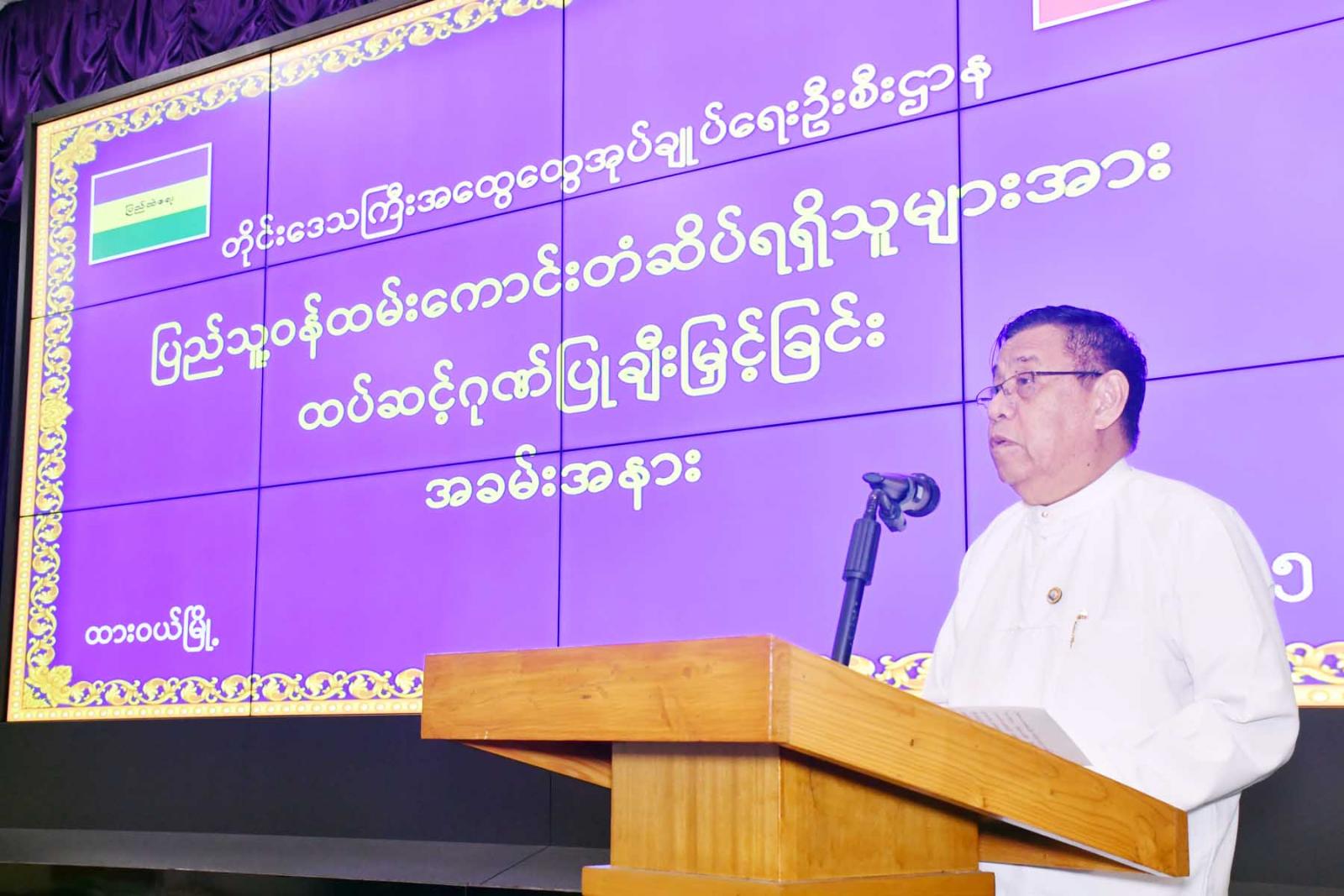 အခမ်းအနားတွင် တိုင်းဒေသကြီးဝန်ကြီးချုပ်ဦးမြတ်ကိုက ၂၀၂၅ ခုနှစ်၊ ပြည်သူ့ဝန်ထမ်းကောင်း တံဆိပ်ချီးမြှင့်ခြင်းခံရသော လုပ်သက် (၂၆) နှစ်ပြည့် တာဝန်ထမ်းဆောင်ဆဲဝန်ထမ်းများနှင့် အငြိမ်းစားဝန်ထမ်းများကို ထပ်ဆင့်ပြီးဂုဏ်ပြုသောအခမ်းအနားဖြစ်ကြောင်း၊ ပြည်သူ့ ဝန်ထမ်းကောင်းတံဆိပ်သည် လုပ်သက်ပေါင်း (၂၆) နှစ်ကို ကြိုးစားပြီး သစ္စာစောင့်သိစွာနှင့် တာဝန်ကျေပွန်စွာ ထမ်းဆောင်ခဲ့သည့် ဝန်ထမ်းများကို ဂုဏ်ပြုသောအားဖြင့် ချီးမြှင့်ခြင်းဖြစ်ပြီး တန်ဖိုးရှိကာ ဂုဏ်ယူစရာကောင်းကြောင်း၊ အထွေထွေအုပ်ချုပ်ရေးဦးစီးဌာနအနေဖြင့် ပြည်သူ့ဝန်ထမ်းကောင်းတံဆိပ်များ ချီးမြှင့်ခဲ့သည်များရှိပြီး အစဉ်အလာမပျက် ဂုဏ်ပြုချီးမြှင့်ခဲ့ကြောင်း၊ ပြည်သူ့ဝန်ထမ်းကောင်းတံဆိပ်ရရှိသူများကို တိုင်းဒေသကြီးအစိုးရအဖွဲ့အနေဖြင့် ဂုဏ်ယူပြီးချီးကျူးကြောင်း၊ ပြည်သူ့ဝန်ထမ်းကောင်းများသည် နှစ်ပေါင်းများစွာတာဝန်ထမ်းဆောင်ခဲ့သည့်အတွက် နိုင်ငံတော်အနေဖြင့် တန်ဖိုးရှိပြီးသစ္စာစောင့်သိသောကြောင့် နိုင်ငံတော်က ပြန်လည်၍ ဝန်ထမ်းများအား ဂုဏ်ပြုချီးမြှင့်ခြင်းဖြစ်ကြောင်း၊ လက်ခံရရှိသော ဝန်ထမ်းများအနေဖြင့် ဂုဏ်ယူဝင့်ကြွားစွာ ဆုတံဆိပ်များကို လက်ခံရန်ဖြစ်ပြီး ရှေ့ဆက်၍ ဌာနအကျိုး၊ တိုင်းဒေသကြီးအကျိုး၊ နိုင်ငံ့အကျိုးကို ဝိုင်းဝန်းပြီးပူးပေါင်းဆောင်ရွက်ပေးကြရန် လိုအပ်ကြောင်း ပြောကြားသည်။