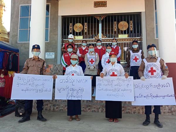 ရှမ်းပြည်နယ်၊ ညောင်ရွှေမြို့နယ် ကြက်ခြေနီတပ်ဖွဲ့သည် လတ်တလောကူးစက်ဖြစ်ပွားနေသည့် Coronavirus Disease 2019 (COVID-19) အသက်ရှူလမ်းကြောင်းဆိုင်ရာရောဂါ ကူးစက်ပြန့်ပွားမှု တားဆီးကာကွယ် ထိန်းချုပ်ရေး လုပ်ငန်းများတွင် တက်ကြွစွာ ပူးပေါင်းပါဝင် ဆောင်ရွက်လျက်ရှိရာ ဒီဇင်ဘာ (၇)ရက် နံနက်ပိုင်းက မြို့နယ်ကြက်ခြေနီအသင်း ဒုတိယဥက္ကဋ္ဌ ဒေါ်နီနီဝင်း ဦးဆောင် သော တပ်ဖွဲ့ဝင်မောင်မယ်များသည် မိုင်းသောက်ကျေးရွာ (မိုင်းသောက် ယာယီဈေး)၌ ဒေသခံပြည် သူများနှင့် ဈေးသည်များ၊ ဈေးဝယ်လာသူများအား ပါးစပ်နှင့် နှာခေါင်းစည်းမျက်နှာဖုံး Mask စနစ် တကျတပ်ဆင်အသုံးပြုရေး Mask Campaign ပြုလုပ်ခဲ့ ကြောင်း သိရှိရသည်။
