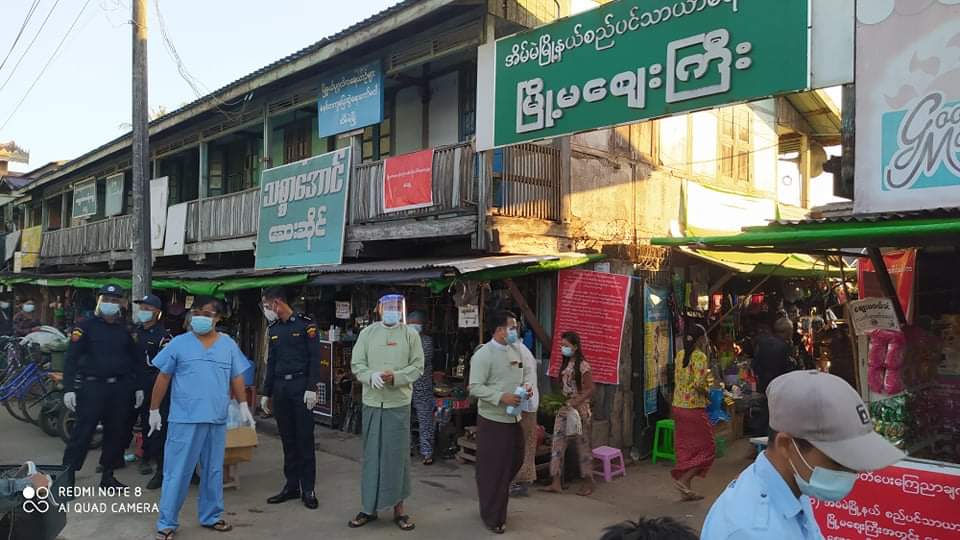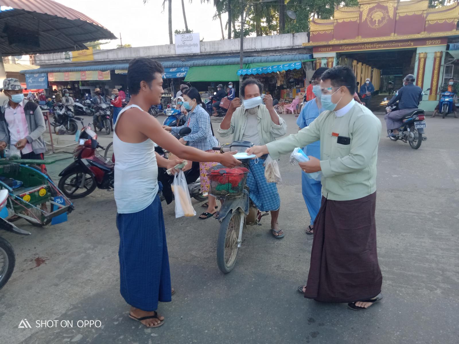 ယင်းလုပ်ငန်းများကို မြို့နယ်အထွေထွေအုပ်ချုပ်ရေးဦးစီးဌာန၊ ပြည်သူ့ကျန်းမာရေးဦးစီးဌာန မြို့နယ်စည်ပင်သာယာရေးအဖွဲ့၊ မြို့နယ်ရဲတပ်ဖွဲ့၊ မီးသတ်ဦးစီးဌာန၊ ကြက်ခြေနီတပ်ဖွဲ့နှင့် တာဝန်ရှိသူများက ပါးစပ်နှာခေါင်းစည်း(၄၀၀)ခုနှင့် Face Shield (၃၀၀)ခုတို့ကို ဖြန့်ဝေပေးခဲ့ကြောင်း သိရသည်။