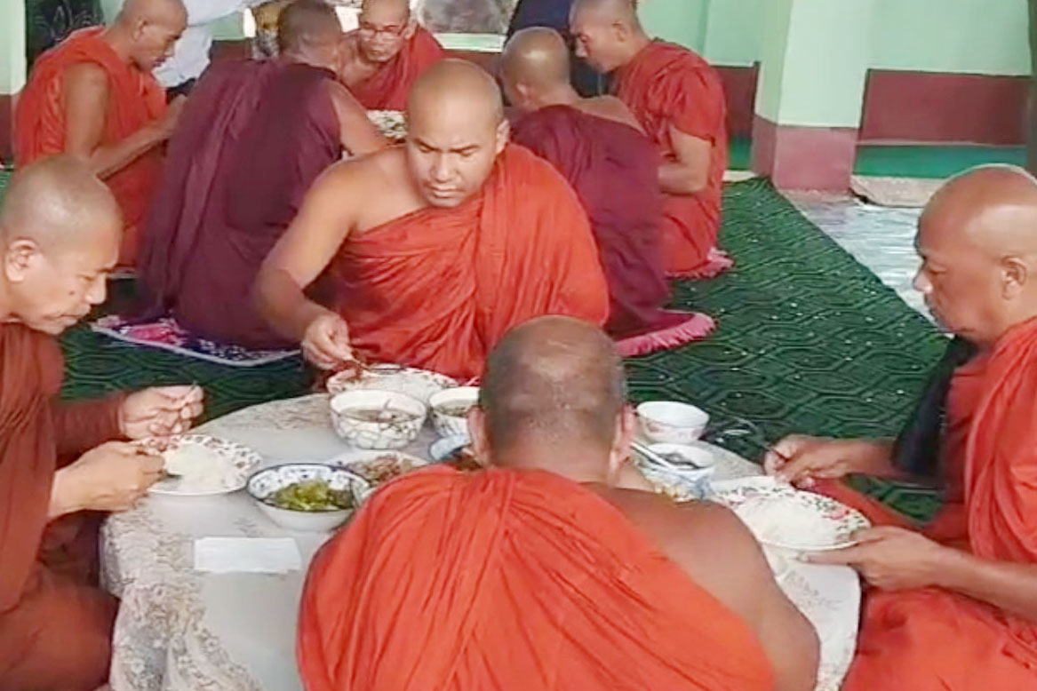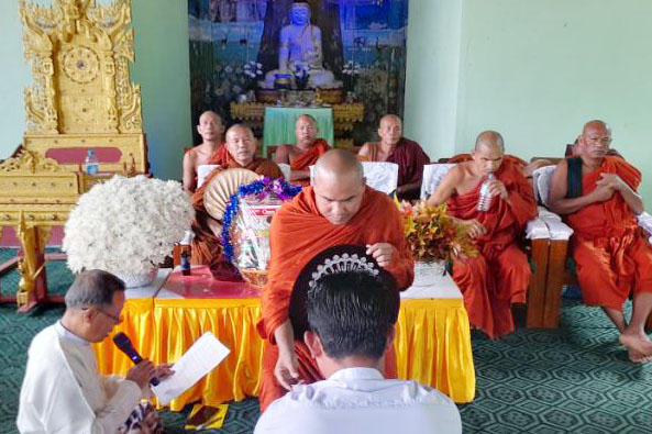 ဆက်လက်၍ ဓမ္မရက္ခိတဓမ္မာရုံ၌ ကရသူရိမြို့၊ မြို့ဦးကျောင်းထိုင်ဆရာတော်ကြီးထံမှ ဧည့်ပရိသတ်များက နမောတဿ(၃)ကြိမ် ရွတ်ဆိုပူဇော်ကန်တော့၍ အနုမောဒနာတရား နာကြားကာ သံယာတော်အရှင်သူမြတ်တို့ထံ လှူဖွယ်ဝတ္ထုများ ဆက်ကပ်လှူဒါန်းခြင်း၊ နေ့ဆွမ်းဆက်ကပ်ခြင်းနှင့် လှူဒါန်းမှုအစုစုတို့အတွက် ရေစက်သွန်းလောင်း အမျှပေးဝေခဲ့ကြောင်း သိရသည်။