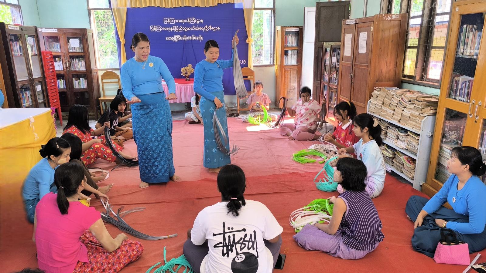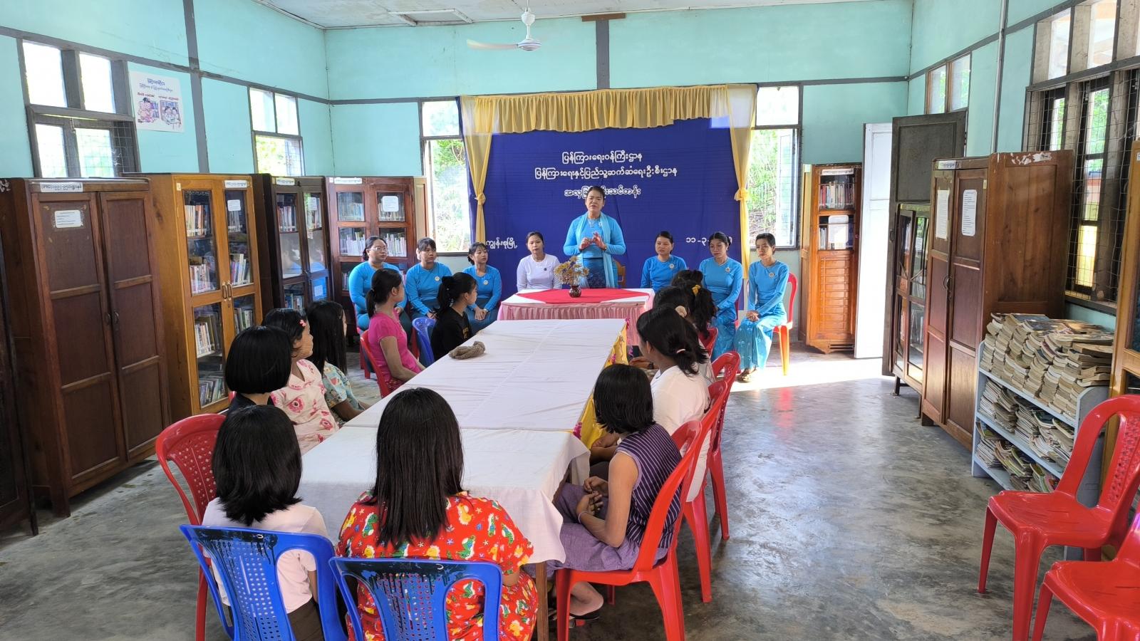 ထို့နောက် သုတ၊ ရသ စာအုပ်စာစောင်များနှင့် အသိပညာပေးနံရံကပ်စာစောင်များ ခင်းကျင်းပြသခဲ့ရာ တက်ရောက်လာသူများက စိတ်ပါဝင်စားစွာ ဖတ်ရှုလေ့လာခဲ့ကြပြီးနောက် မြို့နယ်အမျိုးသမီးရေးရာအဖွဲ့ဥက္ကဋ္ဌနှင့် အဖွဲ့ဝင်များကအလှခြင်းထိုးနည်းများကို စတင်သင်ကြားပေးလျက်ရှိပြီး သင်တန်းတွင် မြို့ပေါ်ရပ်ကွက်များက စိတ်ပါဝင်စားသူ အမျိုးသမီးငယ် ၁၅ ဦး တက်ရောက်သင်ယူလျက်ရှိကြောင်း သိရသည်။