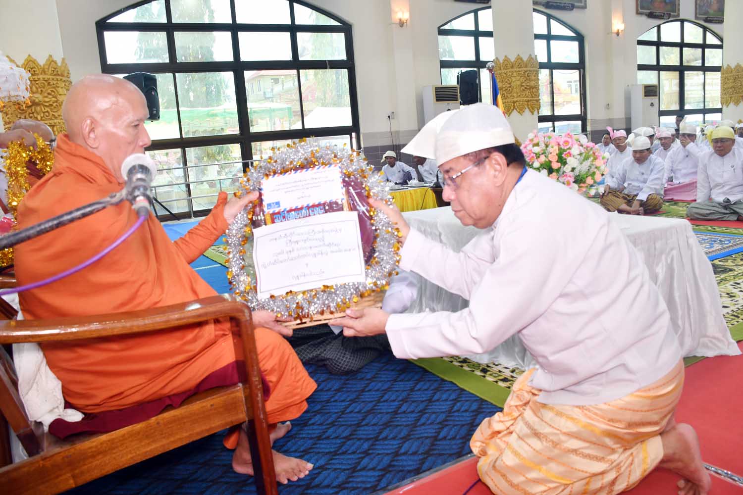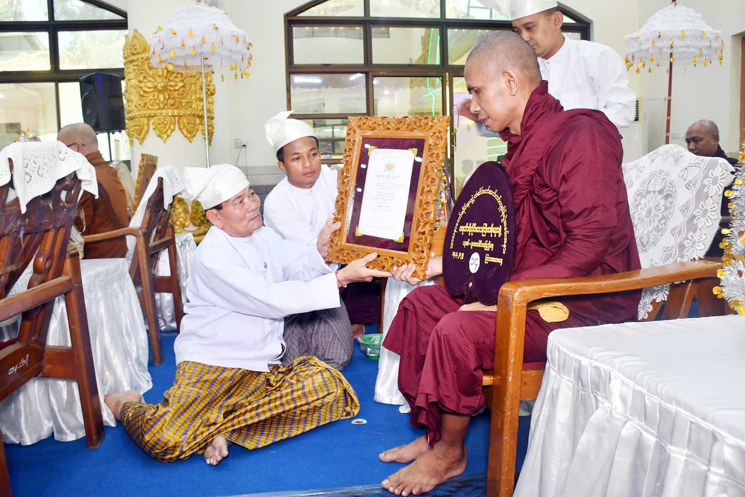ထို့နောက် သံဃာတော်အရှင်သူမြတ်များ ရွတ်ပွားသရဇ္စျာယ်ချီးမြှင့်တော်မူသော အန္တရာယ်ကင်းပရိတ်တရားတော်များ နာယူကြည်ညိုခဲ့ကြပြီး တိုင်းဒေသကြီးဝန်ကြီးချုပ် ဦးမြတ်ကိုက သာသနာရေးဆိုင်ရာများ လျှောက်ထားသည်။