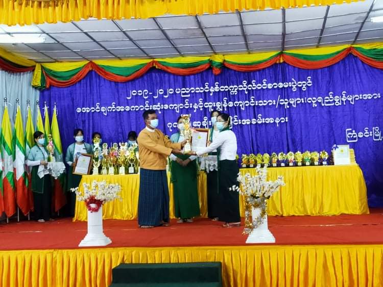 ထို့နောက် မြို့နယ် အောင်ချက်အကောင်းဆုံးဆု၊ ကိုယ်ပိုင်အထက်တန်းကျောင်းဆု၊ ကိုယ်ပိုင်ဘာသာရပ်သင်ကျောင်းအထူးဆု၊ နိုင်ငံတော်အဆင့် ဝိဇ္ဇာဘာသာတွဲဖြင့် ဘာသာစုံဂုဏ်ထူး ပထမဆုရ မောင်ဝေယံလင်းကျော်၊ နိုင်ငံတော်အဆင့် ဝိဇ္ဇာဘာသာတွဲဖြင့် (၅)ဘာသာဂုဏ်ထူးရှင် ဒုတိယဆုရမစုပိုပိုအောင်နှင့် နိုင်ငံတော်အဆင့် ဝိပ္ပံဘာသာတွဲဖြင့်(၅) ဘာသာဂုဏ်ထူးရှင် အဋ္ဌမဆုရ မောင်မင်းခန့်စည်သူ၊ တိုင်းအဆင့်တွင်(၆)ဘာသာဂုဏ်ထူးဖြင့် အဋ္ဌမအဆင့်ရရှိသော မသံသာသင်းနှင့် လူရည်ချွန်မောင်မယ်(၄)ဦးတို့အား တာဝန်ရှိသူအသီးသီးမှ ဂုဏ်ပြုဆုများချီးမြှင့်ခဲ့ကြောင်းနှင့် (၆)ဘာသာဂုဏ်ထူးရှင်(၅)ဦး၊ (၅)ဘာသာဂုဏ်ထူးရှင်(၇)ဦး၊ (၄)ဘာသာ ဂုဏ်ထူးရှင်(၅)ဦး၊ (၃)ဘာသာဂုဏ်ထူးရှင်(၇)ဦးနှင့် (၂)ဘာသာဂုဏ်ထူးရှင် (၃၃)ဦးတို့အား အဖွဲ့များခွဲကာ တာဝန်ရှိသူများက ဂုဏ်ပြုဆုများ ချီးမြှင့်ခဲ့ကြောင်း သိရသည်။