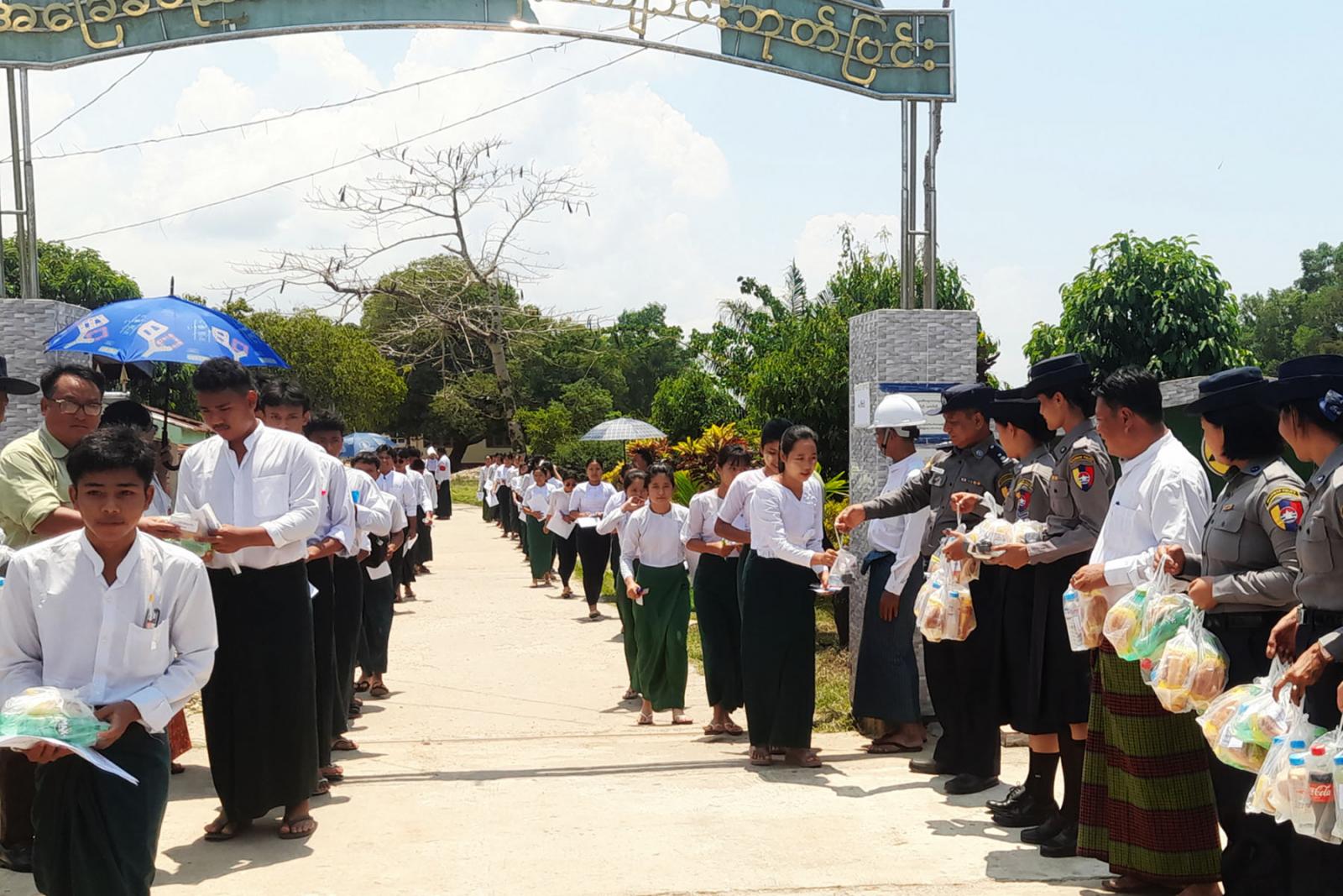 အဆိုပါ တက္ကသိုလ်ဝင်စာမေးပွဲ ဖြေဆိုသည့် ကျောင်းသား၊ ကျောင်းသူများအား ဘုတ်ပြင်းခရိုင် စီမံအုပ်ချုပ်ရေးအဖွဲ့၏ကြီးကြပ်မှုဖြင့် ဘုတ်ပြင်းခရိုင်ရဲတပ်ဖွဲ့မှူး ဒုတိယရဲမှူးကြီးဝင်းနိုင်၊ မြို့နယ်စီမံအုပ်ချုပ်ရေးအဖွဲ့ဥက္ကဋ္ဌ ဦးညီညီနှင့်အဖွဲ့ဝင်များ ခရိုင်/မြို့နယ်အဆင့် ဌာနဆိုင်ရာ တာဝန်ရှိသူများ၊ လူမှုရေးအသင်းအဖွဲ့များ ကျောင်းသား၊ ကျောင်းသူများကို အားဖြည့်အချိုရေနှင့် အာဟာရပြည့်မုန့်များ ဖြန့်ဝေပေးခဲ့ကြောင်း သိရသည်။