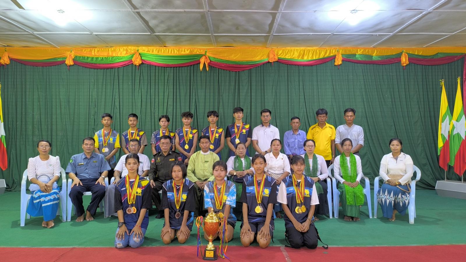 ကြိုဆိုရာတွင် မြို့နယ်အားကစားနှင့်ကာယပညာကော်မတီဥက္ကဋ္ဌ ဦးအောင်စန်းဝင်းနှင့် ဌာနဆိုင်ရာ အကြီးအကဲများ၊ ဒေသခံပြည်သူများက မြို့အဝင်ဆိပ်ကမ်း၌ သောင်းသောင်းဖျဖျ ကြိုဆိုခဲ့ပြီးနောက် အားကစားသမားများအား ဂုဏ်ပြုဆုငွေများ ချီးမြှင့်ပေးခဲ့သည်။