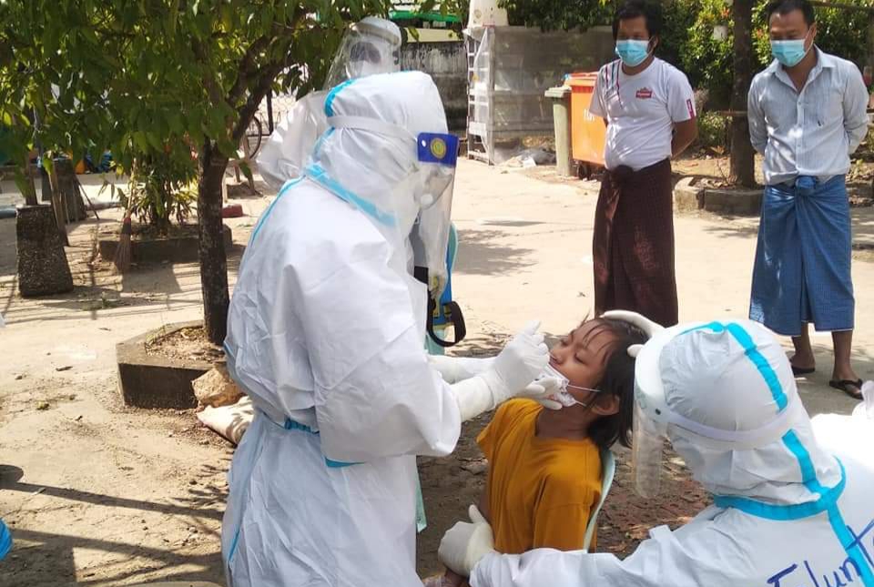 ရန်ကုန်တိုင်းဒေသကြီး၊ အရှေ့ပိုင်းခရိုင်၊ မြောက်ဥက္ကလာပမြိုနယ်တွင် ကိုဗစ်-၁၉ ရောဂါ ရှိသူများနှင့်ဆက်စပ်သူများ ထားရှိသည့် အ.ထ.က(၅) Quarantine Centre တွင် Quarantine ဝင်ရောက်နေသူများကို မြို့နယ်ကျန်းမာရေးဦးစီးဌာနနှင့် ပရဟိတအဖွဲ့များ ပူးပေါင်း၍ ကိုဗစ်-၁၉ရောဂါ ရှိ/မရှိ Swab ယူစစ်ဆေးခြင်းကို ယမန်နေ့ နံနက် ၁၁နာရီက ဆောင်ရွက်ခဲ့သည်။