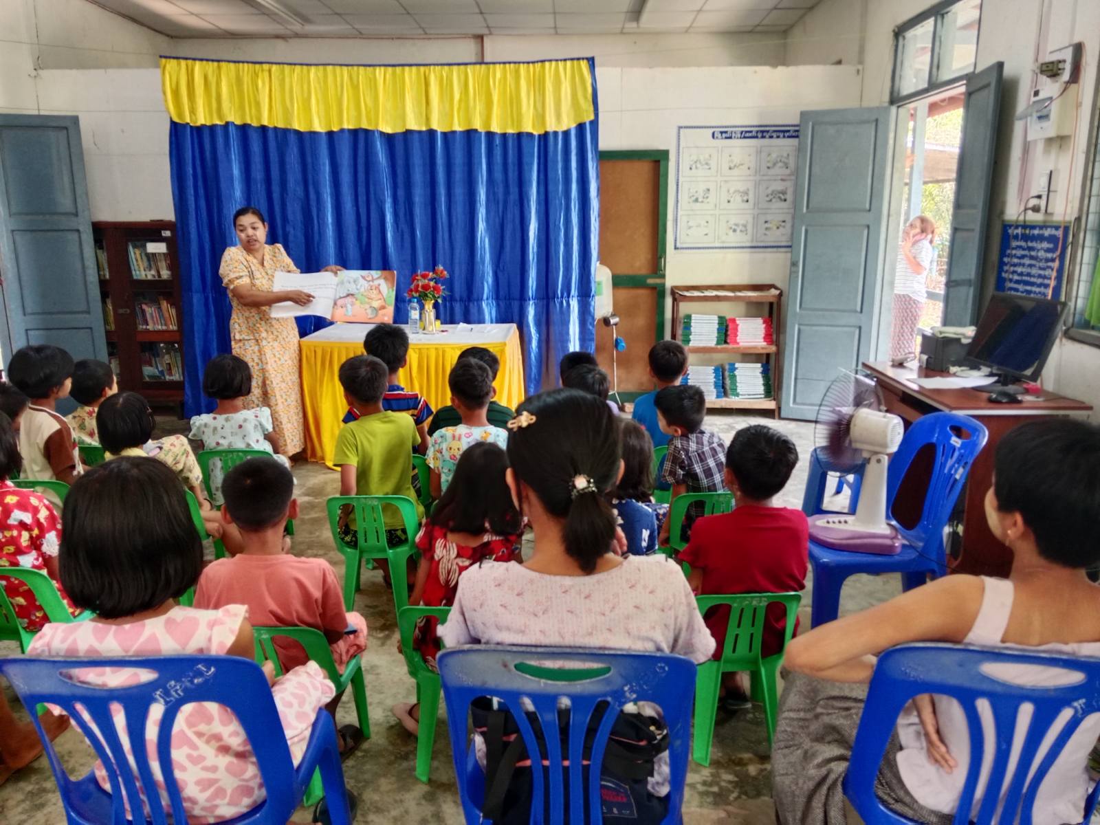 ထိုသို့ဆောင်ရွက်ရာတွင် သရက်ချောင်းမြို့နယ်၊ ပြန်ကြားရေးနှင့် ပြည်သူ့ဆက်ဆံရေးဦးစီးဌာနမှ ဒုတိယဦးစီးမှူး ဒေါ်အေးနွယ်ဝင်းက ကလေးသူငယ်များအား "ပညာရှိယုန်" အကြောင်းပုံပြင်ပြောပြရာ အဆိုပါပုံပြင်တွင် ပညာရှိယုန်မှ တိရစ္ဆာန်များကြောက်ရတဲ့ကျားကြီးကို အနိုင်ရရှိပုံ၊ ကျားကြီးကိုအနိုင်ယူရန် ပညာရှိယုန်နှင့်တိရစ္ဆာန်များအချင်းချင်း စည်းလုံးညီညွတ်မှုရှိပုံ၊ ပညာရှိယုန်က ကျားကြီးကိုအနိုင်ယူရန် အတွေးအခေါ်ရှိပုံ၊ ကျားကြီးက ပညာရှိယုန်ကိုပြိုင်ပွဲတွင် ရှုံးနိမ့်မှ တောထဲမှ ထွက်သွားရပုံ၊ တိရစ္ဆာန်များမှ ပညာရှိယုန်အား ခေါင်းဆောင်တင်မြောက်လိုက်ပုံတို့ကို စိတ်ဝင်စားဖွယ်ရာ ပုံပြောပြလိုက်ပြီးနောက် ကလေးသူငယ်များနှင့် "ပညာရှိယုန်" ပုံပြင်မှ လေးစားဖွယ်ရာ၊ အတုယူဖွယ်ရာ၊ ဉာဏ်ပညာကြီးမားပုံတို့ကို အပြန်အလှန်ဆွေးနွေးခဲ့ကြသည်။