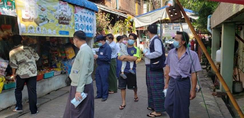 ရန်ကုန်အနောက်ပိုင်းခရိုင်၊ စမ်းချောင်းမြို့နယ်တွင် ယမန်နေ့ နံနက်ပိုင်းအချိန်က စမ်းချောင်းမြို့နယ် အတွင်းရှိ ဟုမ်းလမ်းဘူတာရပ်ကွက်နှင့် ဝေဠုဝန်(မြောက်)ရပ်ကွက်များအတွင်းရှိ စျေးများတွင် ကိုဗစ်-၁၉ ရောဂါ ကာကွယ်ရန်အတွက် နှာခေါင်းစည်း (mask)များ တပ်ဆင်ရေးအတွက် လိုက်လံ စစ်ဆေးခြင်းနှင့် အသိပညာပေးခြင်းများ ဆောင်ရွက်ခဲ့သည်။