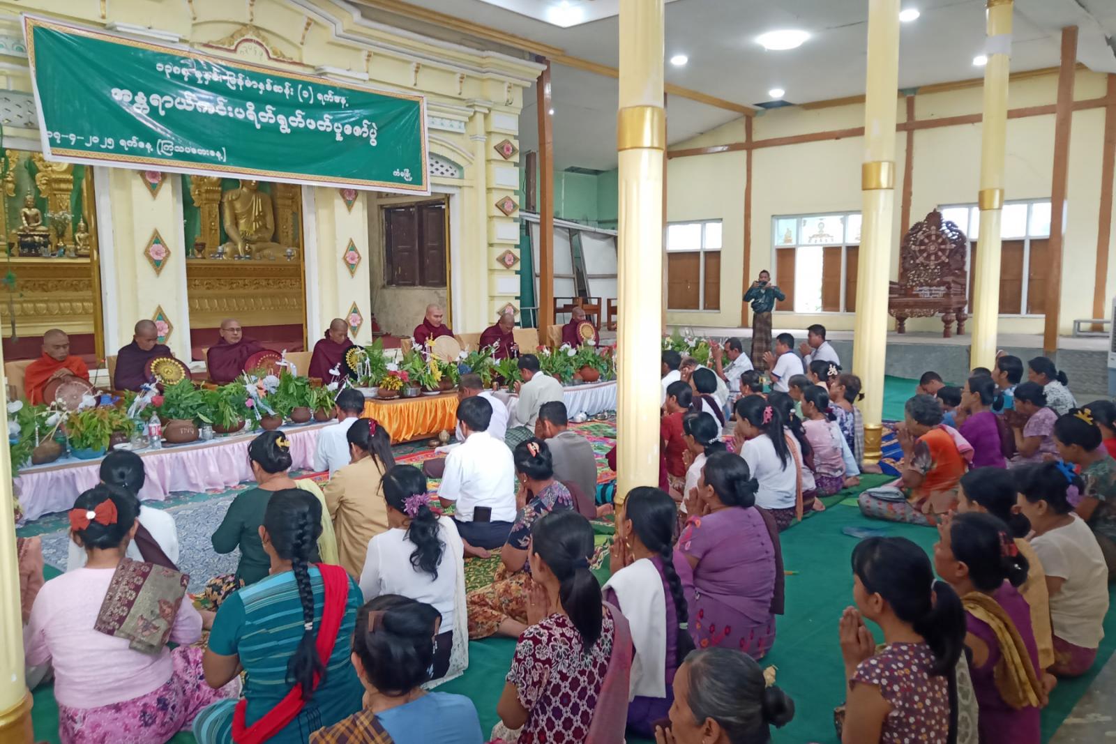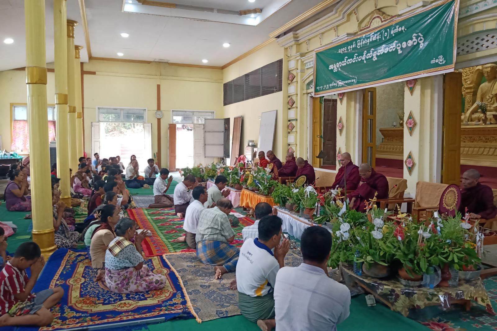 ရှေးဦးစွာ အောင်နန်းရိပ်သာကျောင်းဆရာတော် ဘဒ္ဒန္တတေစိန္နထံမှ ပရိသတ်များက ငါးပါးသီလ ခံယူဆောက် တည်ကြပြီး ဆရာတော် သံဃာတော်များအား မြို့နယ်စီမံအုပ်ချုပ်ရေးအဖွဲ့ ဥက္ကဋ္ဌ ဦးအုန်းဌေးနှင့်အဖွဲ့ဝင်များ၊ ဌာနဆိုင်ရာများ အလှူရှင်များက လှူဖွယ်ဝတ္ထုများ ဆပ်ကပ်လှူဒါန်းခဲ့ကြသည်။ ယင်းနောက်ဆရာတော် သံဃာတော်များက အန္တရာယ်ကင်း ပရိတ်တရားတော်များကို ရွတ်ဖတ်ချီးမြှင့်ပေးခဲ့ပြီး လှူဒါန်းမှု အစုစုတို့အတွက်ရေစက်သွန်းချ အမျှပေးဝေခဲ့ကြကြောင်းသိရသည်။