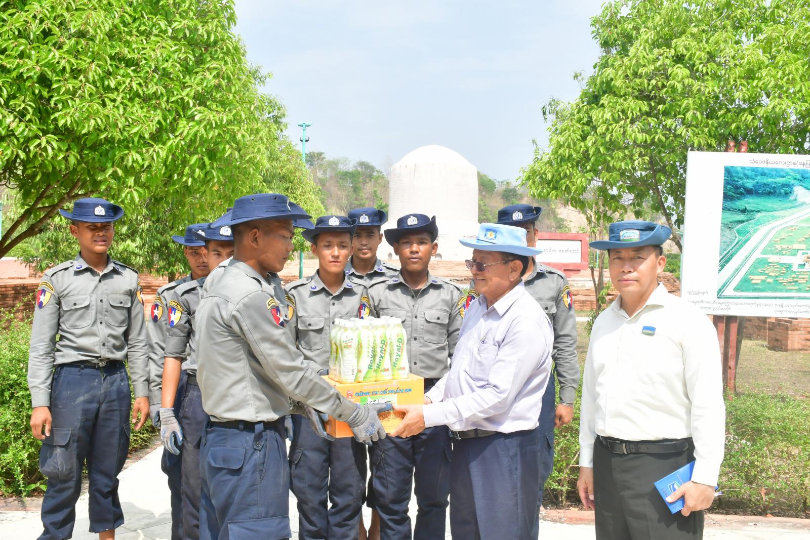ထို့နောက် အဆိုပါသံဝေဇနိယလေးဌာနတွင် မြန်မာနိုင်ငံရဲတပ်ဖွဲ့ဝင်များက ဖယ်ရှားရှင်းလင်းရေး လုပ်ငန်းများဆောင်ရွက်နေမှုကို ကြည့်ရှု့စစ်ဆေးပြီး စားသောက်ဖွယ်ရာများ ပေးအပ်ကာ ပြန်လည်တည်ဆောက်ရေးလုပ်ငန်းများ ဆောင်ရွက်နိုင်ရေးတို့အတွက် တာဝန်ရှိသူများနှင့် လိုအပ်သည်များ ပေါင်းစပ်ညှိနှိုင်းဆောင်ရွက်ပေးခဲ့ကြောင်း သိရသည်။