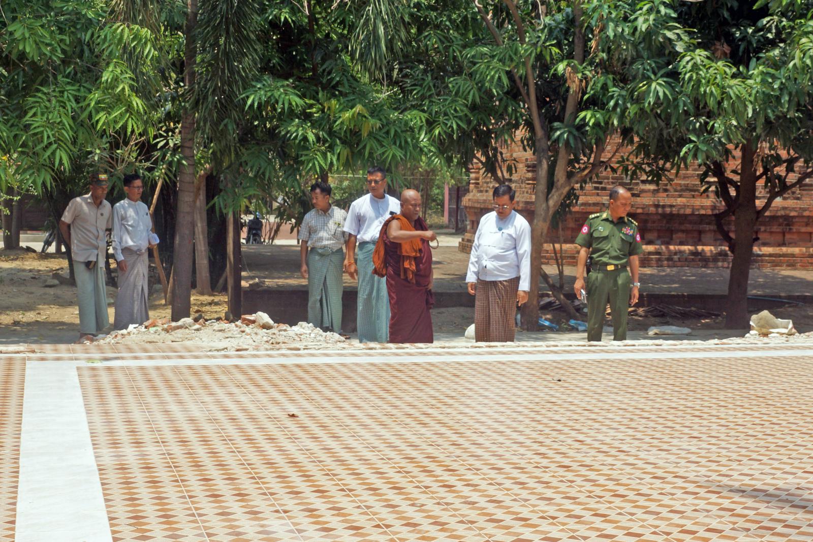 ထို့နောက် နေပြည်တော်ကောင်စီဝင်များနှင့် တာဝန်ရှိသူများသည် မန္တလေးငလျင်ကြီးကြောင့် ထိခိုက်ခဲ့သည့် ပုဗ္ဗသီရိမြို့နယ်၊ ကျည်တောင်ကန်ရပ်ကွက်ရှိ ငလျင်ဘေးသင့်ပြည်သူများအား သွားရောက်၍ အားပေးစကားပြောကြားပြီး တစ်အိမ်ထောင်သုံးပစ္စည်းများ၊ ဆန်နှင့် စားသောက်ဖွယ်ရာများ ပေးအပ်ခဲ့ကာ ထိုမှတစ်ဆင့် ကျည်တောင်ကန်ရပ်ကွက်ရှိ မြို့ဦးဘုန်းတော်ကြီးကျောင်းသို့ သွားရောက်၍ ကျောင်းထိုင်ဆရာတော်အား ဖူးမြော်ကြည်ညိုကာ နဝကမ္မအလှူငွေ၊ ဆန်နှင့် လှူဖွယ်ပစ္စည်းများ ဆက်ကပ်လှူဒါန်းခဲ့ပြီး မန္တလေးငလျင်ကြီးကြောင့် ထိခိုက်ခဲ့သည့် ဘုန်းတော်ကြီးကျောင်းအတွင်းရှိ သိမ်ကျောင်းဆောင်အား လှည့်လည်ကြည့်ရှုခဲ့သည်။