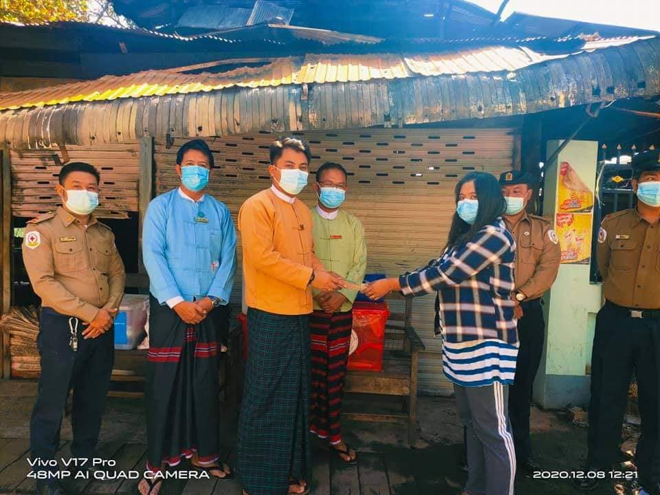 ကရင်ပြည်နယ်၊မြဝတီမြို့တွင် အမှတ်(၄) ရပ်ကွက် မေတ္တာ(၃)လမ်းရှိ ဦးကြည်လွင်၏ အုတ်ခံ၊ ပျဉ်ခင်း၊ ပျဉ်ကာ၊ သွပ်မိုး(၂) ထပ်နေအိမ်တစ်လုံး မီးအားမြှင့်စက် အပူလွန်ကဲပြီး ဒီဇင်ဘာ ၇ ရက်နေ့ ည ၁၀ နာရီအချိန်က ဖြစ်ပွားခဲ့သောမီးလောင်မှုကြောင့် မီးဘေးသင့်ခဲ့သောအိမ်ထောင်စုအား ထောက်ပံ့ငွေများနှင့် ပစ္စည်းများကို ယနေ့ မွန်းလွှဲပိုင်းအချိန်က သွားရောက်ထောက်ပံ့ပေးခဲ့ကြောင်းသိရသည်။