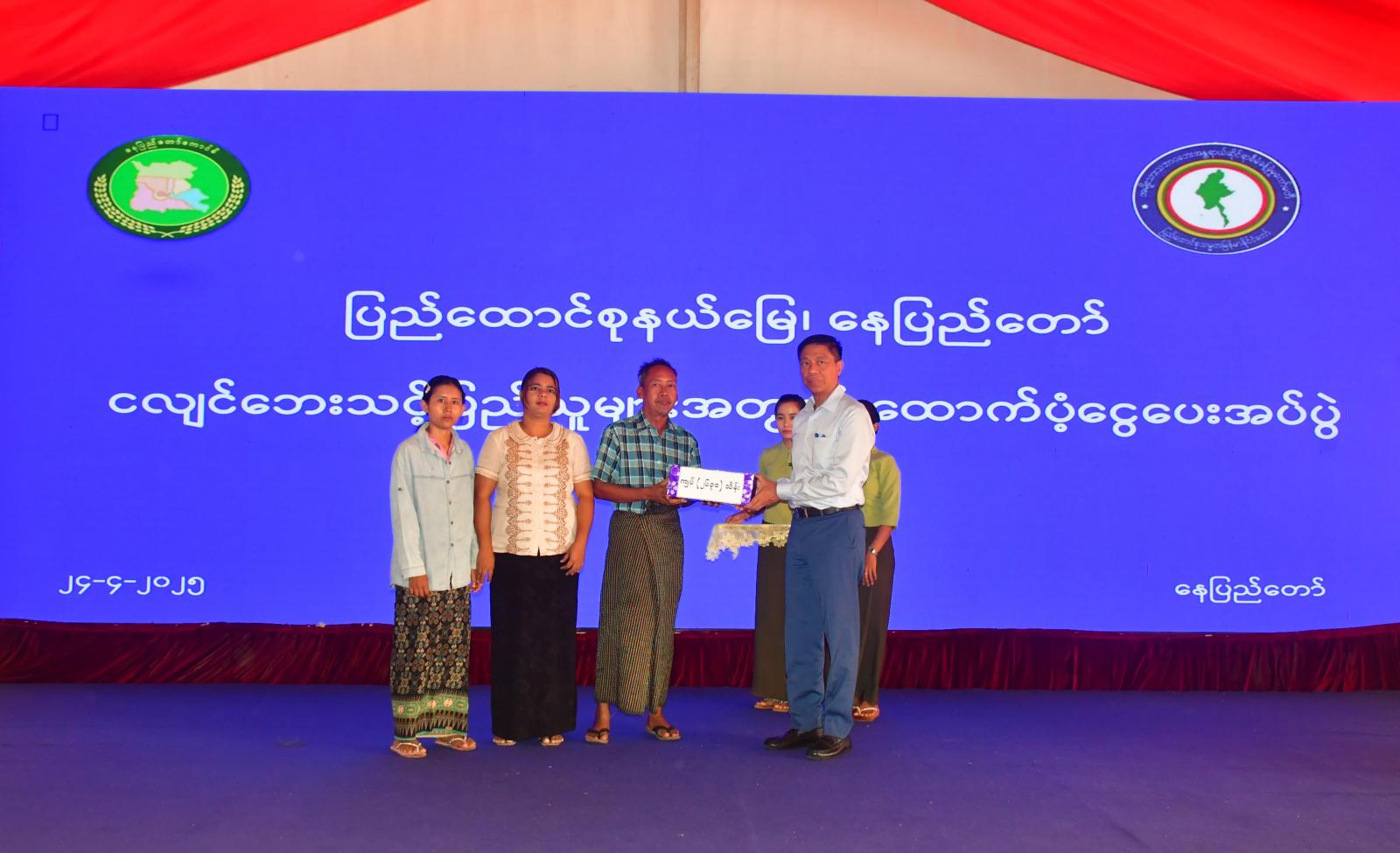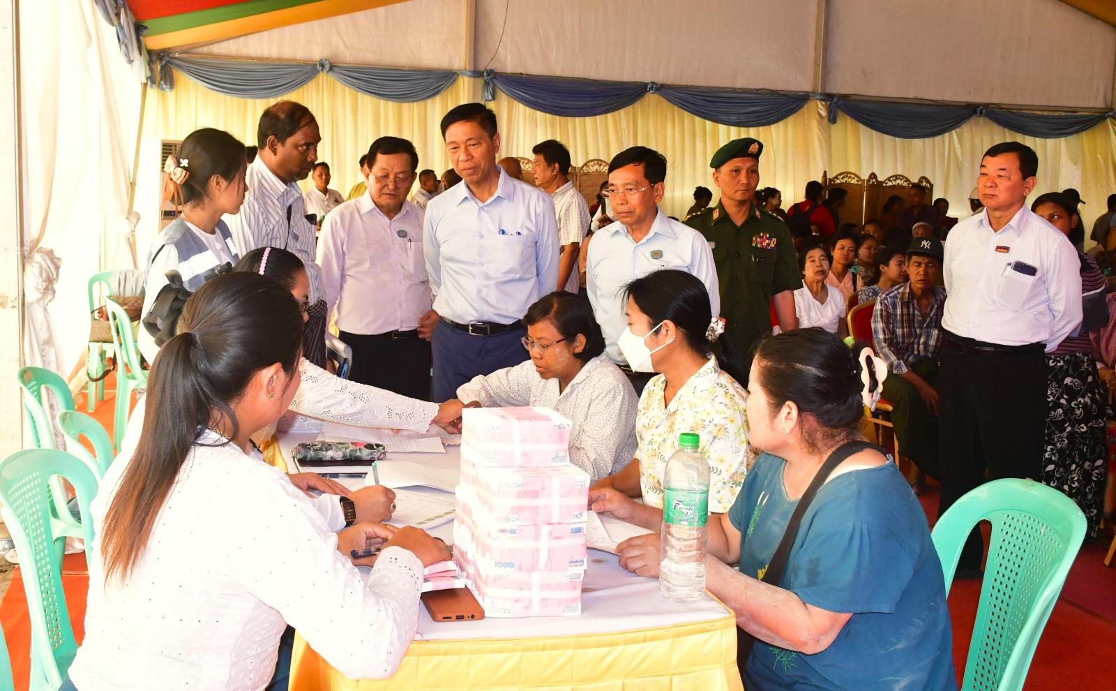 ယင်းနောက် အမျိုးသားသဘာဝဘေးအန္တရာယ်ဆိုင်ရာစီမံခခန့်ခွဲမှုကော်မတီ၊ ဒုတိယဥက္ကဋ္ဌ၊ လူမှုဝန်ထမ်း၊ ကယ်ဆယ်ရေးနှင့် ပြန်လည်နေရာချထားရေးဝန်ကြီးဌာန၊ ပြည်ထောင်စုဝန်ကြီး၊ ဒေါက်တာစိုးဝင်းက နိုင်ငံတော်မှထောက်ပံ့သည့် သေဆုံးသူတစ်ဦးလျှင် ကျပ်ဆယ်သိန်းနှုန်းဖြင့် ၅၀ ဦးအတွက် စုစုပေါင်း ထောက်ပံ့ငွေ ၅၀,၀၀၀,၀၀၀ (ကျပ် သိန်းငါးရာ တိတိ)အားလည်းကောင်း၊ ပြည်ထောင်စုနယ်မြေ၊ နေပြည်တော်သဘာဝဘေးအန္တရာယ်ဆိုင်ရာစီမံခန့်ခွဲမှုအဖွဲ့ဥက္ကဋ္ဌ၊ နေပြည်တော်ကောင်စီဥက္ကဋ္ဌ၊ ဦးသန်းထွန်းဦးက လူမှုဝန်ထမ်း၊ ကယ်ဆယ်ရေးနှင့် ပြန်လည်နေရာချထားရေးဝန်ကြီးဌာနမှ ထောက်ပံ့သည့် သေဆုံးသူတစ်ဦးလျှင် သုံးသိန်းကျပ်နှုန်းဖြင့် ၅၀ ဦးအတွက် စုစုပေါင်း ထောက်ပံ့ငွေ ၁၅,၀၀၀,၀၀၀ (ကျပ် သိန်းတစ်ရာ့ငါးဆယ် တိတိ)အား လည်းကောင်း အသီးသီး ထောက်ပံ့ပေးအပ်ခဲ့ကြသည်။