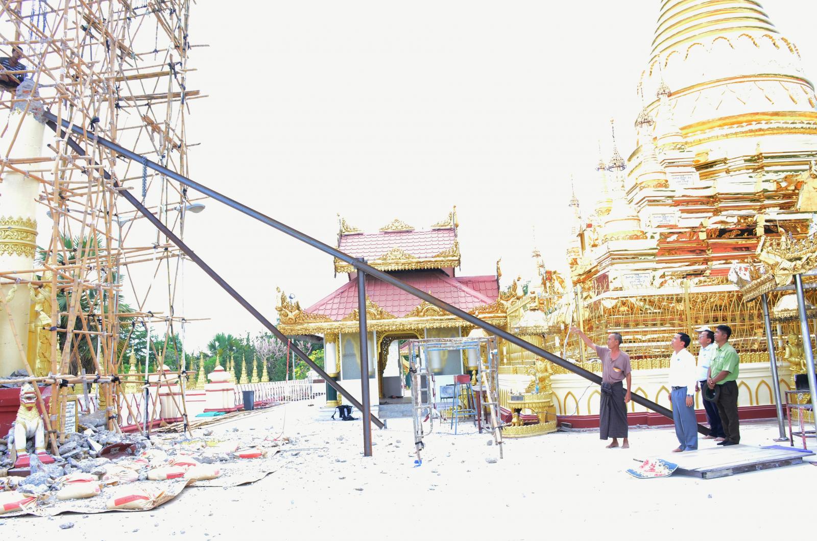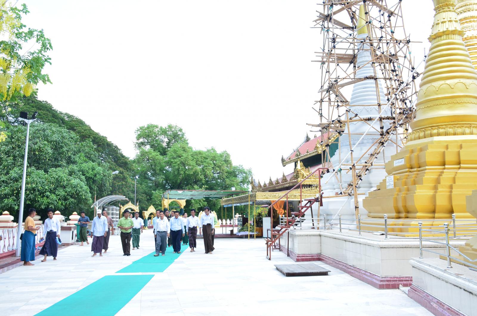 နေပြည်တော်ကောင်စီဥက္ကဋ္ဌ ဦးသန်းထွန်းဦးသည် ယမန်နေ့ညနေပိုင်းတွင် နေပြည်တော်ကောင်စီဝင်များ၊ တာဝန်ရှိသူများနှင့်အတူ မန္တလေးငလျင်ကြီးကြောင့် ထိခိုက်ပျက်စီးခဲ့သော ဒက္ခိဏသီရိမြို့နယ် ရန်အောင်မြင် ရွှေလက်လှ စေတီတော်မြတ်ကြီးသွားရောက်ပြီး ထိခိုက်ပျက်စီးမှုနှင့် ပြန်လည်ပြုပြင်နေမှုအား သွားရောက်လှည့်လည်ကြည့်ရှုစစ်ဆေးရာ တာဝန်ရှိသူများ၏ တင်ပြချက်များအပေါ် လိုအပ်သည်များ ပေါင်းစပ်ညှိနှိုင်းဆောင်ရွက်ပေးပြီး ရေရှည်တည်တံ့ခိုင်မြဲအောင် စနစ်တကျ ပြန်လည်ပြုပြင်ဆောင်ရွက်ရေး၊ စေတီတော်ကြီး ပြန်လည်ပြုပြင်နိုင်ရေးအတွက် ရှေးဟောင်းသုတေသနဦးစီးဌာန၏ အကြံပြုချက်များနှင့်အညီ ဆောင်ရွက်ရေး၊ အလှူရှင်များမှ ပြန်လည်လှူဒါန်းမည့်အပေါ် သက်ဆိုင်ရာတာဝန်ရှိသူများ၊ ဂေါပကအဖွဲ့များမှ ဝိုင်းဝန်းကူညီဆောင်ရွက်ပေးသွားရန် မှာကြားခဲ့သည်။