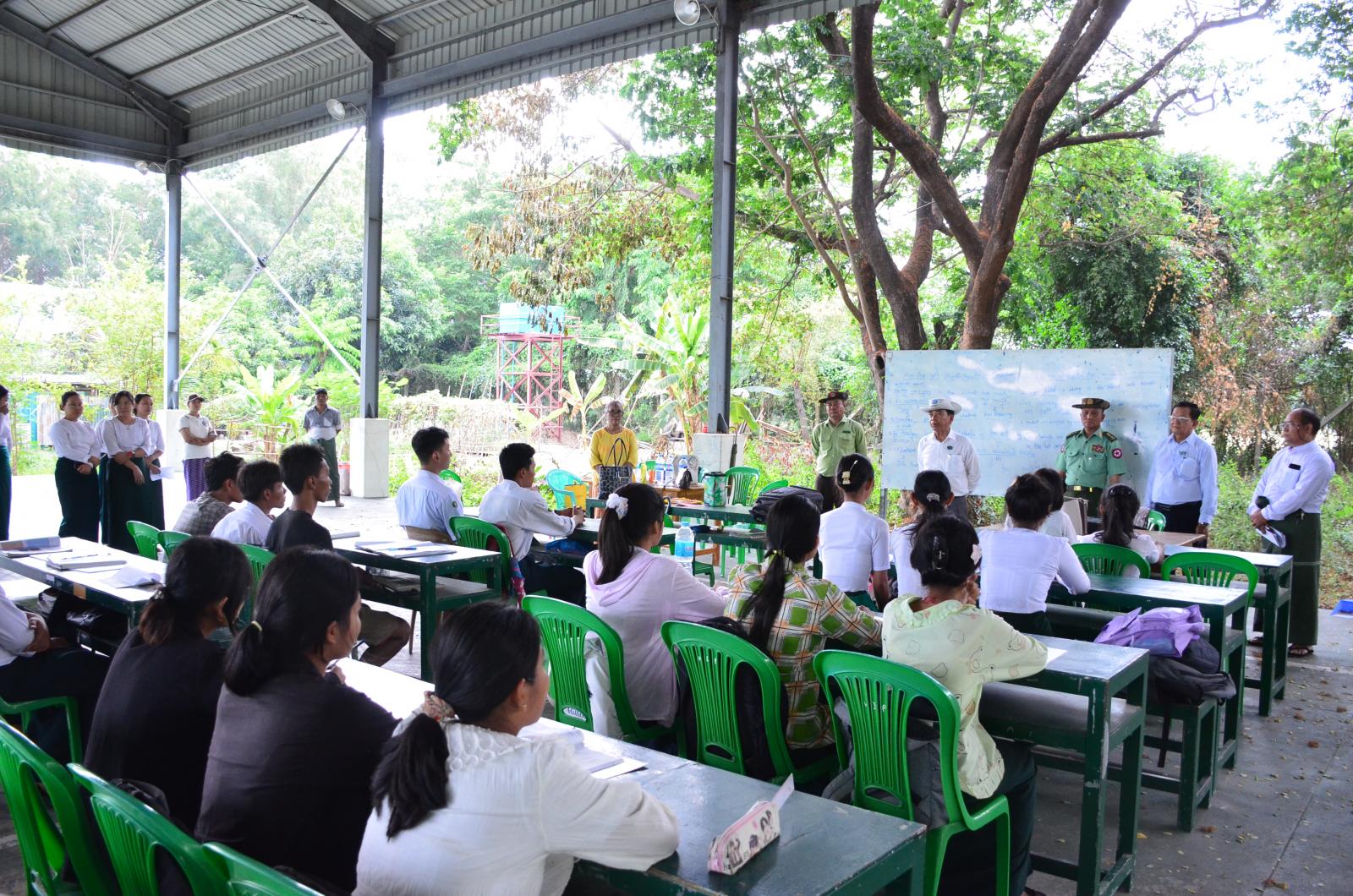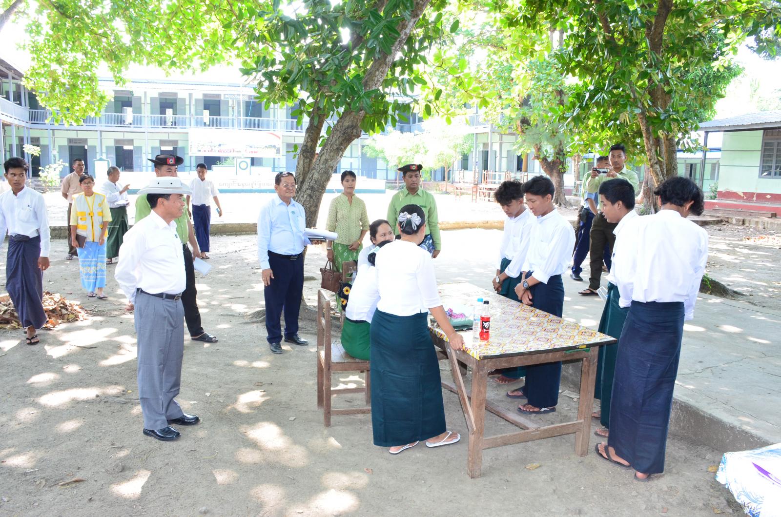 ဦးစွာ နေပြည်တော်ကောင်စီဥက္ကဋ္ဌ ဦးသန်းထွန်းဦးနှင့် တာဝန်ရှိသူများသည် လယ်ဝေးမြို့နယ် အ.ထ.က-၁ သို့ သွားရောက်ပြီး ၂၀၂၅ ခုနှစ် တက္ကသိုလ်ဝင်စာမေးပွဲ ပြန်လည်ဖြေဆိုမည့် ကျောင်းသား၊ ကျောင်းသူများအား စခန်းသွင်းသင်ကြားနိုင်ရန် ပြင်ဆင်ထားမှုအခြေအနေများကို လှည့်လည်ကြည့်ရှုစစ်ဆေးရာ တာဝန်ရှိသူများမှ တင်ပြချက်များအပေါ် လိုအပ်သည်များ ပေါင်းစပ်ညှိနှိုင်းဆောင်ရွက်ပေးပြီး ကျောင်းသား၊ ကျောင်းသူများနှင့်တွေ့ဆုံ၍ အားပေးစကားပြောကြားခဲ့သည်။