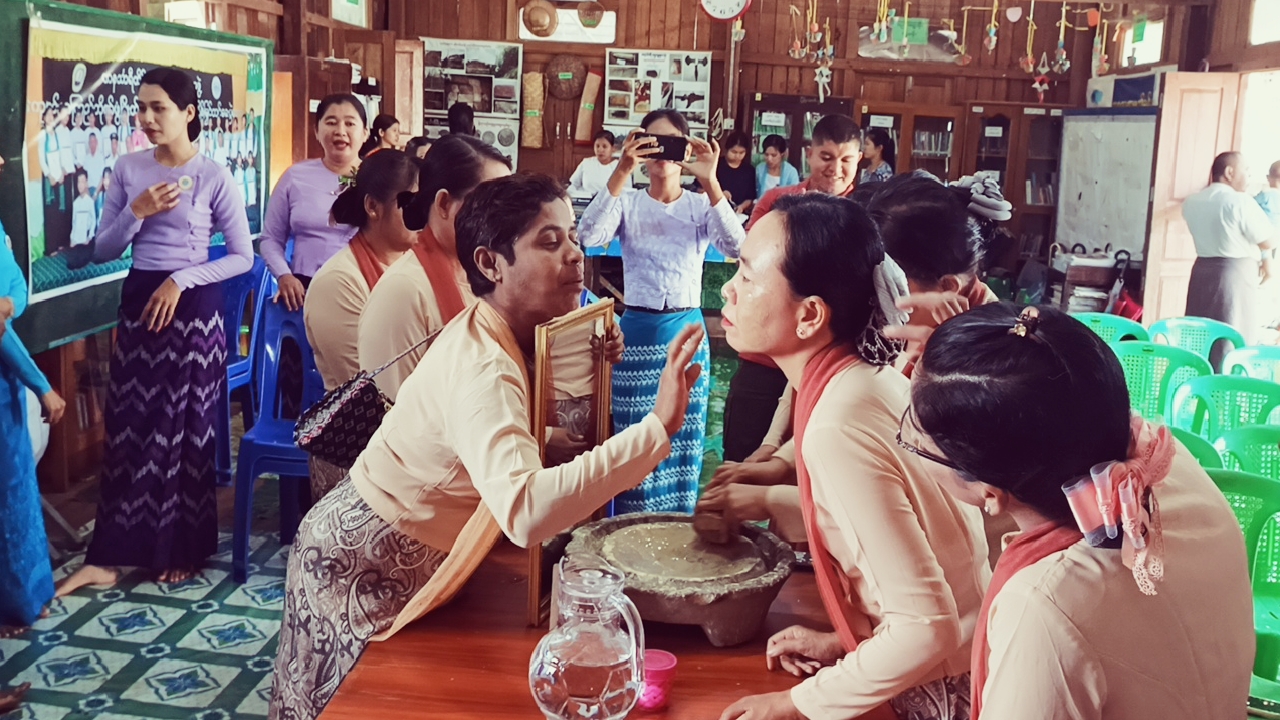 ဆက်လက်၍ မြို့နယ်ပြန်ကြားရေးနှင့်ပြည်သူ့ဆက်ဆံရေးဦးစီးဌာန ဦးစီးအရာရှိ ဦးထိန်ဝင်းက မြန်မာ့ရိုးရာ သနပ်ခါးလိမ်းခြယ်ပွဲ အခမ်းအနား ကျင်းပပြုလုပ်ရခြင်း၏ ရည်ရွယ်ချက်များကို ရှင်းလင်းဆွေးနွေးပေးသည်။
