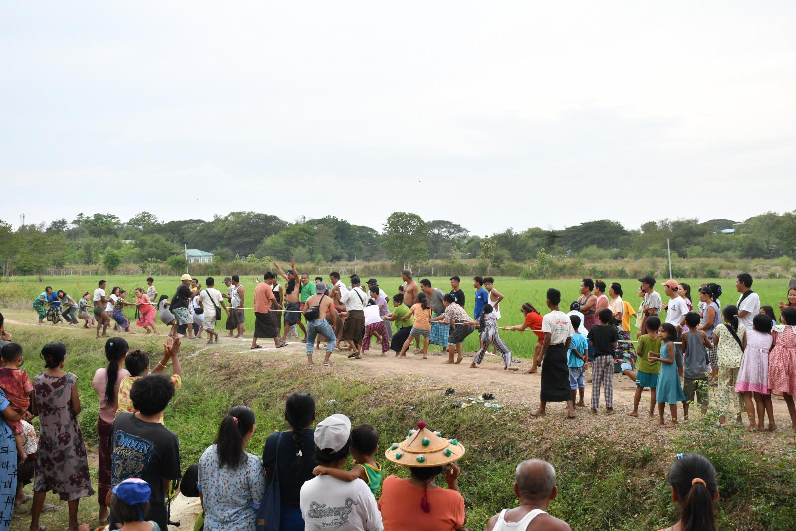 ပြည်ထောင်စုနယ်မြေ၊ နေပြည်တော် တပ်ကုန်းမြို့နယ်တွင် နွေစပါးနှင့် နွေသီးနှံစိုက်ခင်းများ ဆည်ရေအပြင် မိုးရေများရရှိစေရေး မိုးခေါ်လွန်ဆွဲပြိုင်ပွဲကို ယမန်နေ့ညနေပိုင်းက ကွင်းအမှတ် ၁၃၁၉ ဗိုလ်မင်းရောင်ကွင်းတွင် အိုးစည်၊ ဒိုးပတ်များဖြင့် ကျင်းပခဲ့သည်။