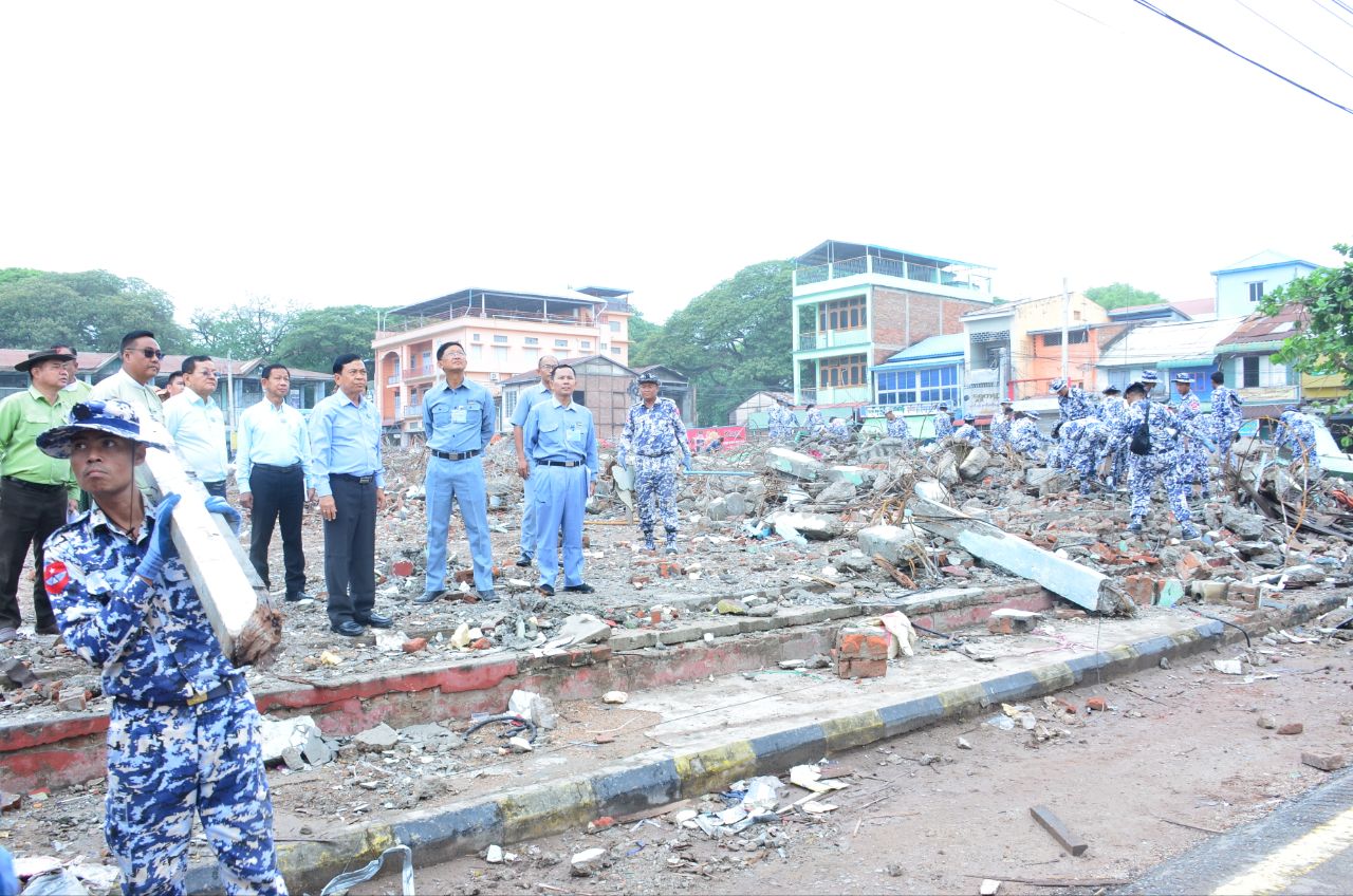 နေပြည်တော်ကောင်စီဥက္ကဋ္ဌ ဦးသန်းထွန်းဦးသည် နေပြည်တော်ကောင်စီဝင်များ၊ တာဝန်ရှိသူများလိုက်ပါလျက် ယမန်နေ့နံနက်ပိုင်းတွင် ပျဉ်းမနားမြို့မဈေးနှင့် မင်္ဂလာ ၈ လမ်း အတွင်းရှိ ငလျင်လှုပ်ခတ်မှုကြောင့် ပြိုကျပျက်စီးခဲ့သည့်အဆောက်အအုံများအား တပ်မတော်သားများ၊ စည်ပင်သာယာရေးကော်မတီမှဝန်ထမ်းများနှင့် ဌာနဆိုင်ရာများ စုပေါင်း ၍ စက်ယန္တယားကြီးများဖြင့် သန့်ရှင်းရေးဆောက်ရွက်နေမှုအား ကြည့်ရှုစစ်ဆေးခဲ့ရာ တာဝန်ရှိသူများက ရှင်းလင်းတင်ပြမှုအပေါ် နေပြည်တော်ကောင်စီဥက္ကဋ္ဌက လိုအပ်သည်များ မှာကြားခဲ့သည်။ ထို့နောက် နေပြည်တော်ကောင်စီဥက္ကဋ္ဌ ဦးသန်းထွန်းဦးသည် ပျဉ်းမနားမြို့၊ မြို့ဦးကျောင်းတိုက်သို့ရောက်ရှိပြီး ကျောင်းထိုင်ဆရာတော်ထံ နာဝကမ္မအလှူငွေနှင့် လှူဖွယ် ပစ္စည်းများဆပ်ကပ်လှူဒါန်းကာ ကျောင်းဝန်းအတွင်းရှိ ငလျင်ဘေးကြောင့် ထိခိုက်ပျက်စီးခဲ့သည့် သာသနိကအဆောက်အအုံများအား ဖယ်ရှားရှင်းလင်းနေမှုအား ကြည့်ရှုပြီး ဆောင်ရွက်နေသည့်တပ်မတော်သားများအား စားသောက်ဖွယ်ရာများ ပေးအပ်ခဲ့သည်။