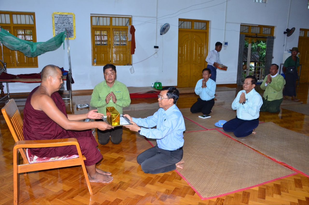 ဆက်လက်၍ နေပြည်တော်ကောင်စီဥက္ကဋ္ဌ ဦးသန်းထွန်းဦးနှင့် တာဝန်ရှိသူများသည် ဒက္ခိဏသီရိမြို့နယ် ရန်အောင်မြင်တောရကျောင်း(မြို့တော်ဝန်ကျောင်း) သို့သွားရောက်ပြီး ကျောင်းထိုင်ဆရာတော်ထံမှ ငါးပါးသီလခံယူဆောက်တည်၍ ဆရာတော်ထံ နဝကမ္မအလှူငွေနှင့် လှူဖွယ်ပစ္စများဆပ်ကပ်လှူဒါန်းခဲ့ပြီး ရေစက်သွန်းချအမျှဝေပေးခဲ့သည်။ ယင်းနောက် နေပြည်တော်ကောင်စီဥက္ကဋ္ဌဦးသန်းထွန်းဦးနှင့် တာဝန်ရှိသူများသည် ကျောင်းတိုက်ရှိ ဆရာတော်သံဃာတော်များအား နေ့ဆွမ်းလောင်းလှူခဲ့ပြီး ကျောင်းထိုင် ဆရာတော်ထံ နေ့ဆွမ်းဆပ်ကပ်လှူဒါန်းခဲ့သည်။