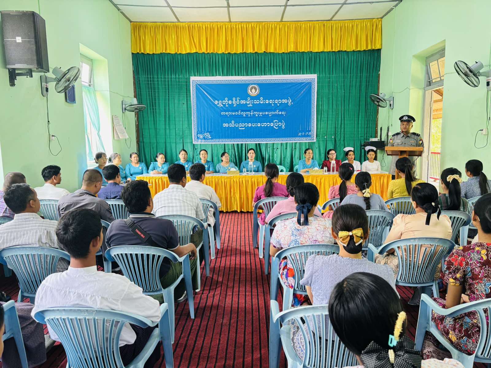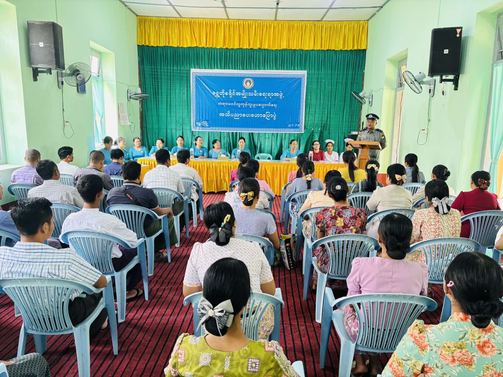 အဆိုပါ ဟောပြောပွဲတွင် မြန်မာနိုင်ငံရဲတပ်ဖွဲ့မှ ရဲအုပ်တင်လင်းမောင်မှ တရားမဝင် လူကုန်ကူးမှုပပျောက်ရေးနှင့် မူးယစ်ဆေးဝါးနှင့် စိတ်ကိုပြောင်းလဲစေနိုင်သောဆေးဝါးများ အန္တရာယ်အကြောင်း အသိပညာပေးဟောပြောရာတွင် တရားမဝင် လူကုန်ကူးမှုအကြောင်းအရာ၊ ဖြစ်ပေါ်လာနိုင်သောအန္တရာယ်များ၊ လူ့အခွင့်အရေးချိုးဖောက်မှုများ၊ မိမိကိုယ်ကို မည်သို့ကာကွယ်ရမည်၊ သံသယရှိပါက မည်သို့သတင်းပေးရမည်နှင့်ပတ်သက်၍ ဥပဒေရေးရာ အချက်အလက်များကို အသေးစိတ် ဟောပြောခဲ့ကြောင်း သိရသည်။