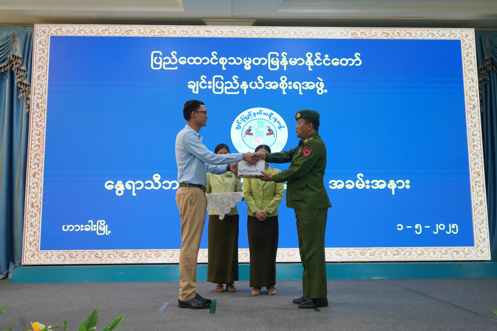 ယင်းနောက် ချင်းပြည်နယ်မြို့နယ်ပညာရေးမှူး ဦးဘီကူးဒူက သင်တန်းဖွင့်လှစ်ရခြင်းနှင့်ပတ်သက်၍ ရှင်းလင်းတင်ပြပြီးနောက် လုံခြုံရေးနှင့်နယ်စပ်ရေးရာဝန်ကြီး ဗိုလ်မှူးကြီး သိန်းထွန်းအောင်က သင်တန်းနည်းပြဆရာ/မများကိုလည်းကောင်း၊ လူမှုရေးရာဝန်ကြီး ဦးဝင်းဇော်ဦးက သင်တန်းဆင်းလက်မှတ်ကိုလည်းကောင်း ပေးအပ်ချီးမြှင့်သည်။