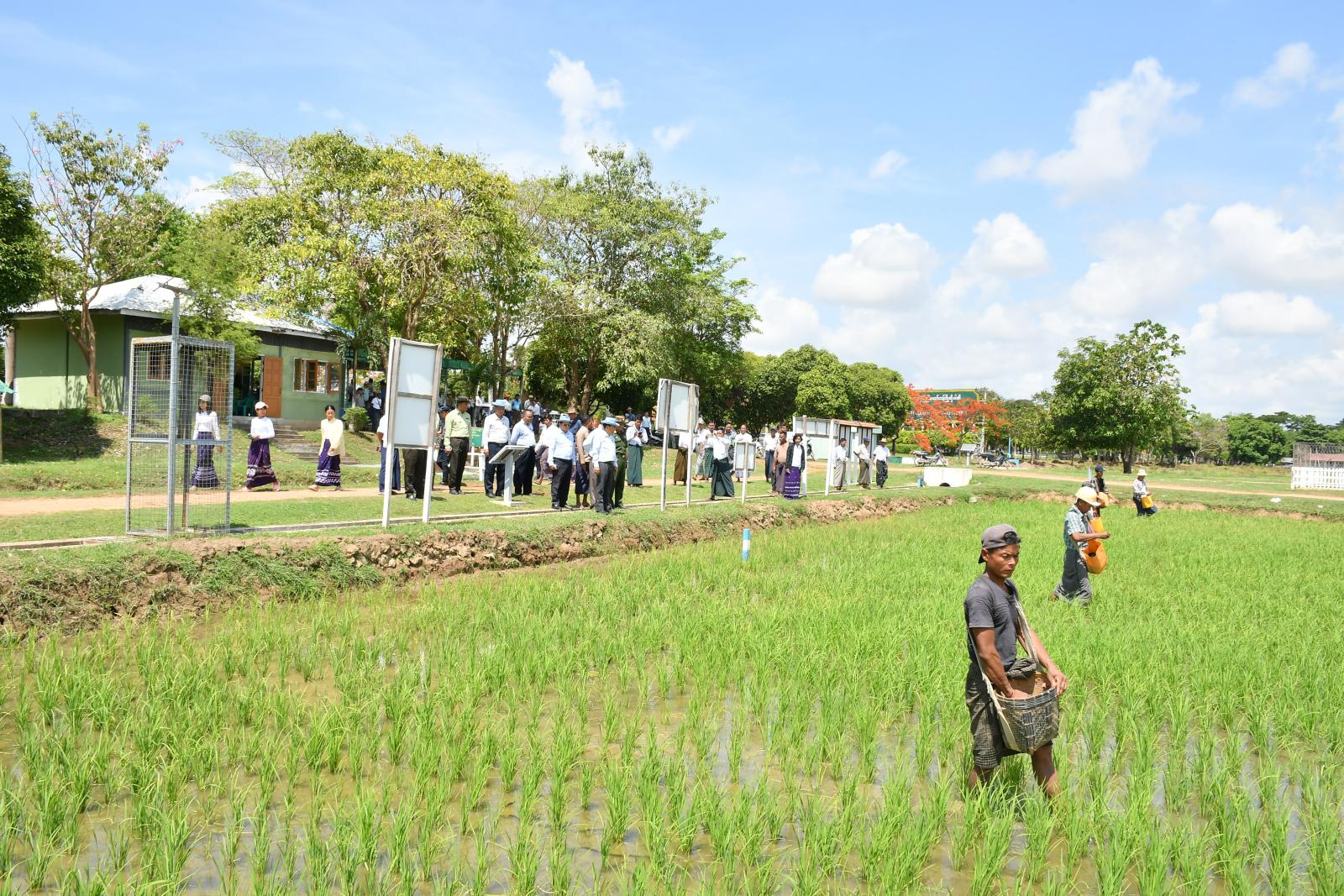 ယင်းနောက် နေပြည်တော်ကောင်စီဥက္ကဋ္ဌ ဦးသန်းထွန်းဦးသည် လယ်ဝေးမြို့နယ်၊ သစ်ဆိမ့်ပင် ကျေးရွာအုပ်စု၊ ကွင်းအမှတ်(၁၈၂၆)ရှိ တောင်သူ ဒေါ်သင်းသင်းခိုင်၏ နွေစပါးစိုက်ခင်းအား သဘာဝမြေဩဇာနှင့် ယူရီးယားဓာတ်မြေဩဇာများ ပတ်ဖျန်းနေမှုအား ကြည့်ရှုအားပေးပြီး တောင်သူများအတွက် သရုပ်ပြဆောင်ရွက်ထားသည့် သဘာဝမြေဆွေးပုံများနှင့် တီကောင် မွေးမြူရေးကန်များအား ကြည့်ရှုစစ်ဆေးပြီး တောင်သူများနှင့်တွေ့ဆုံ၍ သီးနှံများပန်းတိုင် အထွက်နှုန်းရရှိရေး၊ သီးထပ်ရာခိုင်နှုန်းတိုးမြင့် စိုက်ပျိုးနိုင်ရေး မျိုး၊ မြေ၊ ရေ၊ နည်း နည်းလမ်းများနှင့်အညီ စနစ်တကျစိုက်ပျိုးရေး၊ သဘာဝမြေဩဇာကို တောင်သူများ ကိုယ်တိုင် ပြုလုပ်သုံးစွဲရေး၊ စိုက်ပျိုးရေးအပြင် မွေးမြူရေးလုပ်ငန်းများဖြစ်သော ဥစားကြက်နှင့် ဆိတ်၊ နွားများကို ခြံလှောင်စနစ်ဖြင့် တိုးချဲ့မွေးမြူနိုင်ရေးတို့ကို မှာကြားခဲ့သည်။