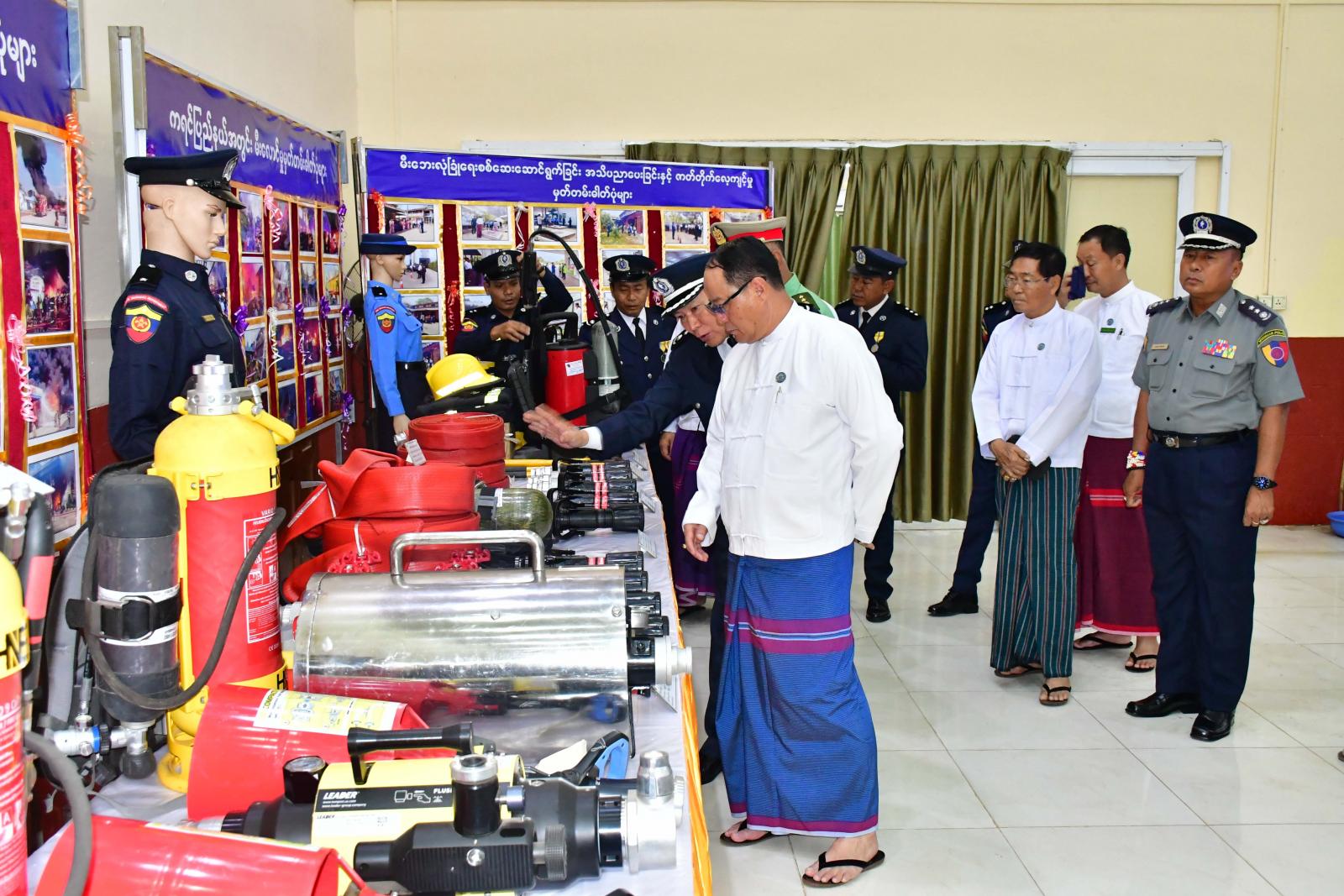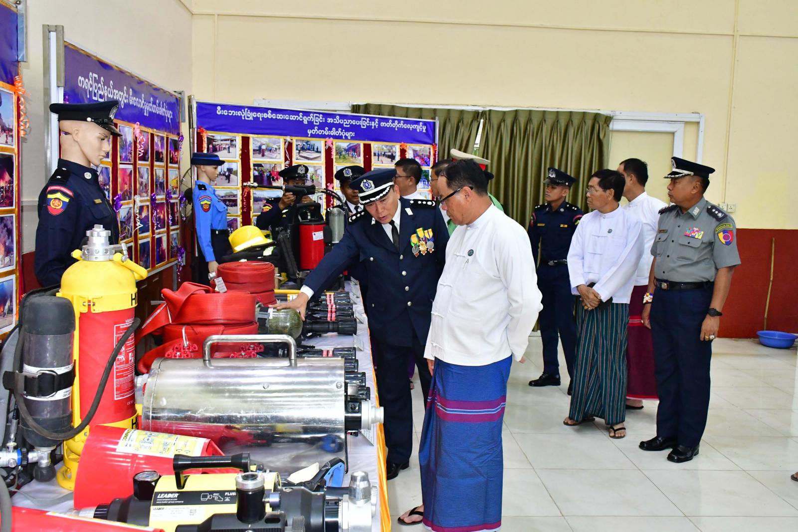 ယင်းနောက် ပြည်နယ်ဝန်ကြီးချုပ်နှင့်အခမ်းအနားသို့တက်ရောက်လာသူများသည် ခင်းကျင်းပြသထားသော မီးဘေးလုံခြုံရေးစစ်ဆေးဆောင်ရွက်ခြင်း၊ အသိပညာပေးခြင်းနှင့်ဇာတ်တိုက် လေ့ကျင့်ခြင်းဆောင်ရွက်မှု မှတ်တမ်းဓာတ်ပုံများ၊ ပြည်နယ်အတွင်းမီးလောင်မှု မှတ်တမ်းဓာတ်ပုံများ၊ မီးငြှိမ်းသတ်ရေးနှင့် အရေးပေါ်ရှာဖွေကယ်ဆယ်ရေး သုံးပစ္စည်းများကို လှည့်လည်ကြည့်ရှုအားပေးခဲ့ကြပြီး တာဝန်ရှိသူများအား လိုအပ်သည်များမှာကြားခဲ့ကြောင်း သိရသည်။