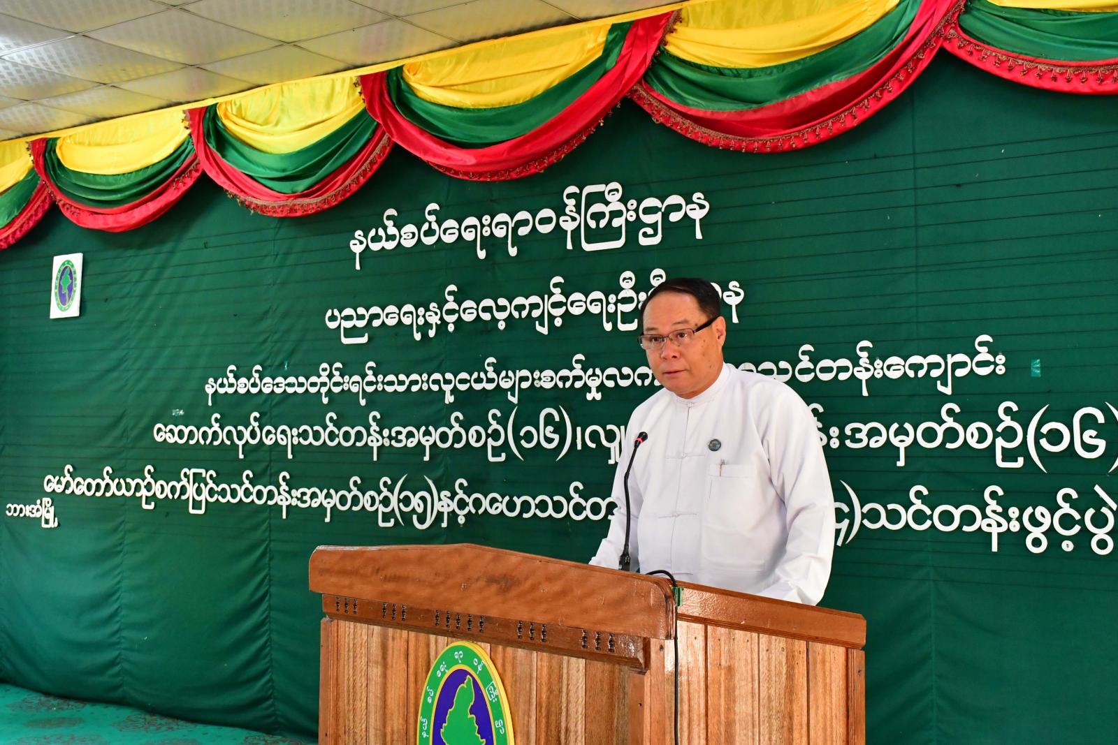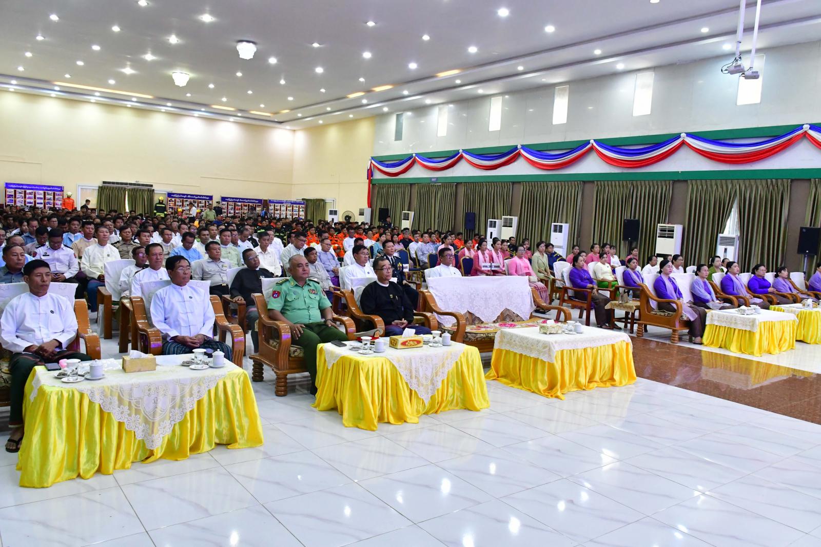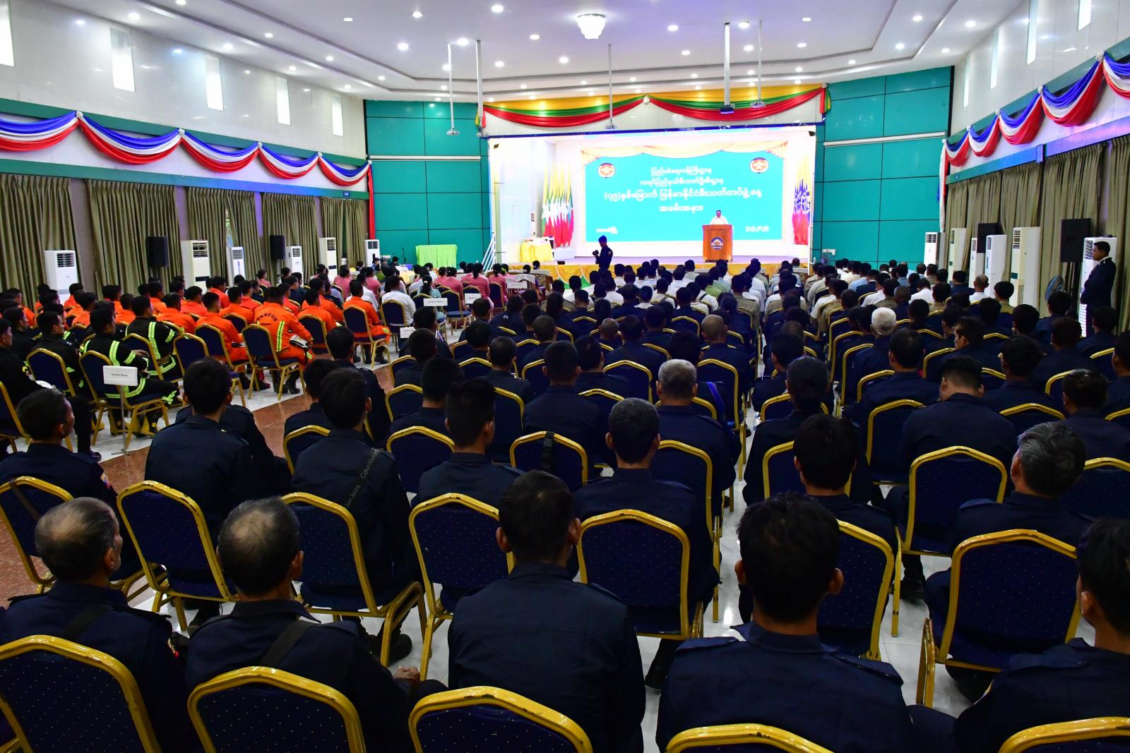 အဆိုပါအခမ်းအနားတွင် မတ်လ ၂၈ ရက်နေ့ကလှုပ်ခတ်ခဲ့သောမန္တလေးမြေငလျင်ကြီးတွင် အသက်ဆုံးရှုံးသွားသူများနှင့် ပျက်စီးဆုံးရှုံးခဲ့ရမှုများအတွက် ဝမ်းနည်းကြောင်းအထိမ်းအမှတ်အဖြစ် မတ်တပ်ရပ်၍ တစ်မိနစ်ငြိမ်သက်ခဲ့ကြပြီး ပြည်နယ်ဝန်ကြီးချုပ်ဦးစောမြင့်ဦးက ကမ္ဘာ့ရာသီဥတု ပြောင်းလဲမှုဖြစ်စဉ်ကြောင့် နိုင်ငံအသီးသီးတွင် သဘာဝဘေးအန္တရာယ်များ နှစ်စဉ်ပိုမိုများပြားလာသည်ကိုတွေ့ရှိရပြီး မီးသတ်တပ်ဖွဲ့ဝင်များအနေဖြင့် မီးငြိမ်းသတ်ရေးနှင့်ရှာဖွေကယ်ဆယ်ရေးလုပ်ငန်းများတွင် နိုင်ငံတော်နှင့်တိုင်းရင်းသားပြည်သူလူထုအကျိုးအတွက် အသက်ကို ပဓာနမထားဘဲ စွန့်လွှတ်စွန့်စားမှုများဖြင့် အကျိုးပြုနေကြသည်ကို လေးစားဂုဏ်ယူဖွယ်မြင်တွေ့ရပါကြောင်း၊ မီးသတ်တပ်ဖွဲ့ဝင်များအနေဖြင့် ခေတ်စနစ်နှင့်အညီ မီးငြှိမ်းသတ်ရေးနှင့်ရှာဖွေကယ်ဆယ်ရေးဆိုင်ရာပညာရပ်များကို ကျွမ်းကျင်ပိုင်နိုင်မှုရှိအောင် ကြိုးပမ်းလေ့လာထားကြရန်လိုအပ်သကဲ့သို့ သဘာဝဘေးအန္တရာယ်ဆိုင်ရာစိန်ခေါ်မှု အသစ်များကိုရင်ဆိုင်နိုင်ရန် အဆင့်မြင့်ရှာဖွေ ကယ်ဆယ်ရေးအဖွဲ့များကို ဒေသအလိုက်စုဖွဲ့လေ့ကျင့်ပြီး အသင့်ဆောင်ရွက်ထားကြရန်မှာကြားလိုကြောင်း ပြောကြားခဲ့သည်။