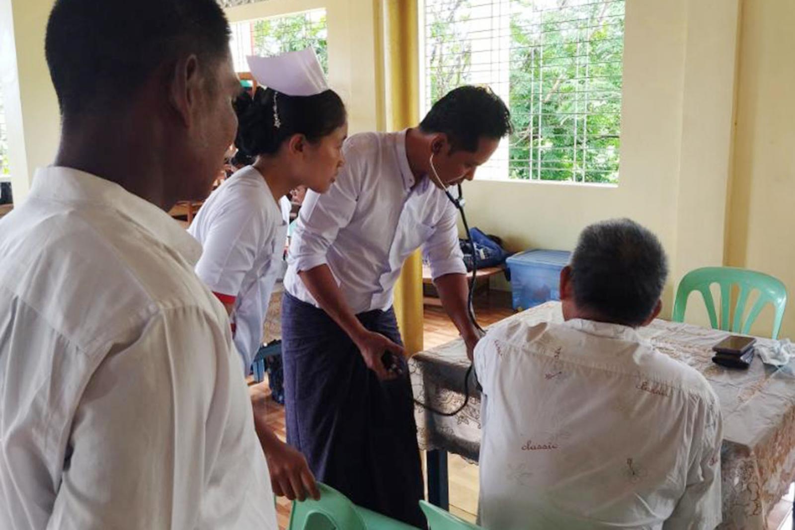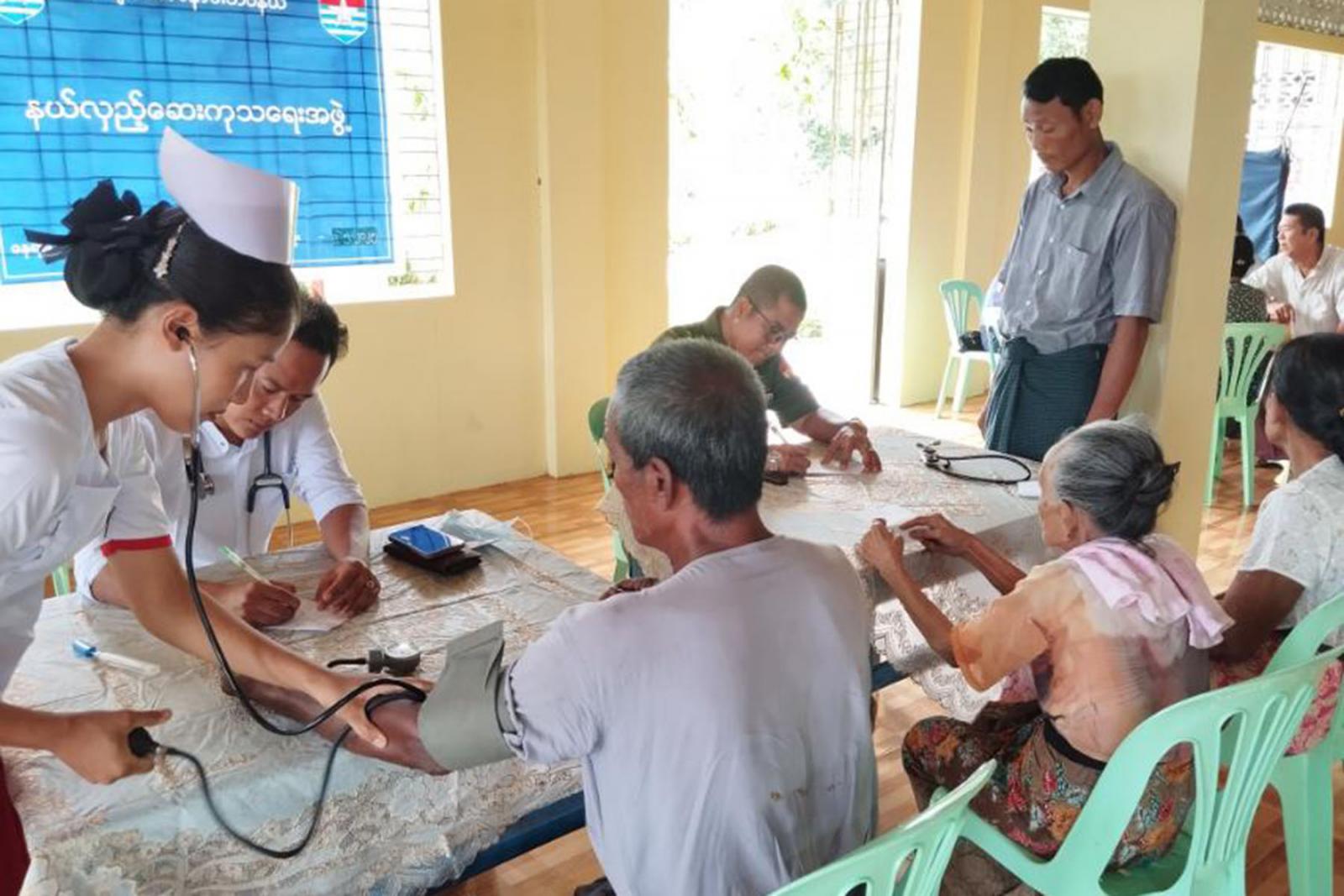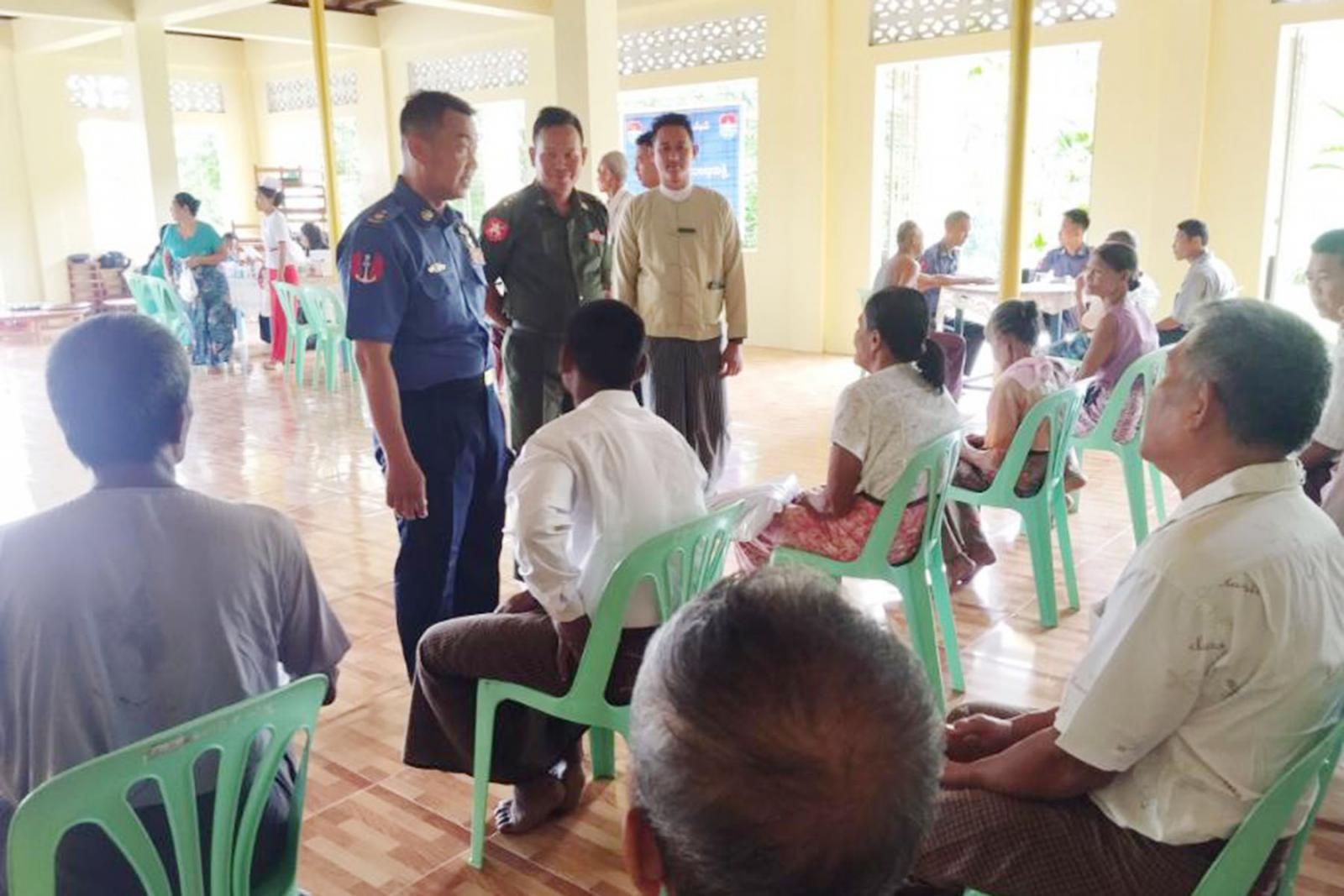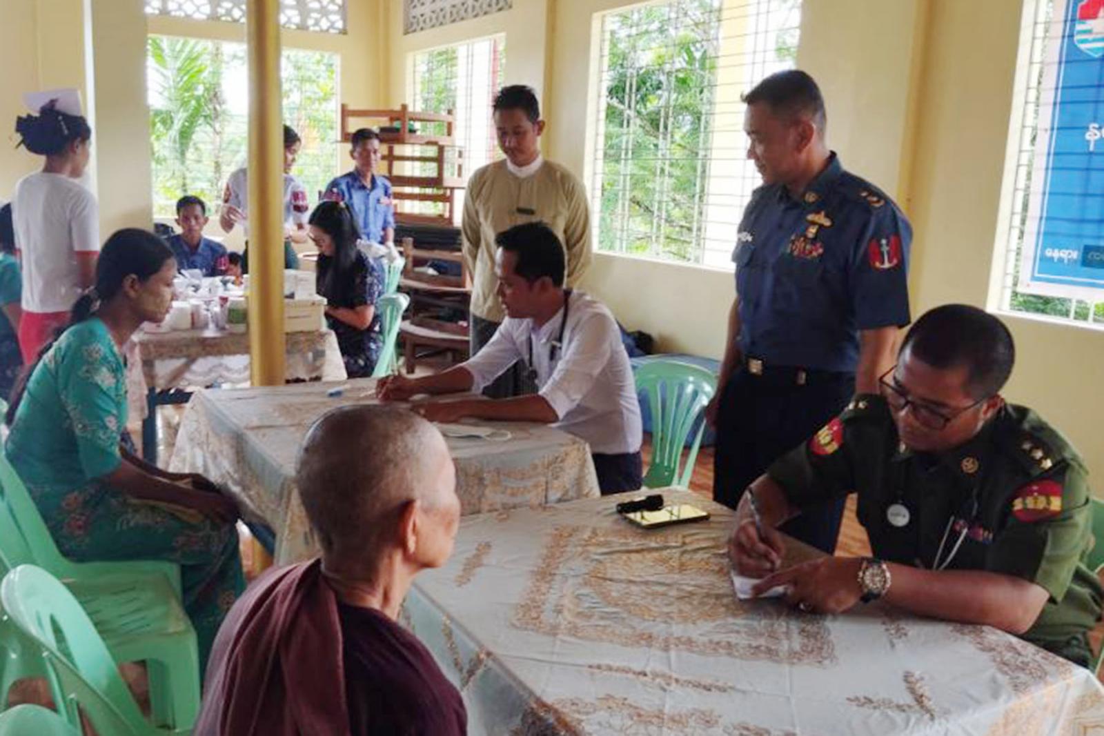 ထိုသို့ ဒေသခံပြည်သူများအား ကျန်းမာရေးစောင့်ရှောက်၍ အခမဲ့ဆေးဝါးကုသပေးခြင်းကို အမှတ် (၃၈)ရေတပ်စခန်းမှ ဒုတိယဗိုလ်မှူးကြီးကျော်သီဟနှင့် ဆေးတပ်ဖွဲ့ဝင်များ၊ အမှတ် (၅၅၅) ခြေမြန်တပ်ရင်းမှ ဗိုလ်ကြီးဟန်ဝင်းဇော်နှင့်တပ်ဖွဲ့ဝင်များ၊မြို့အထွေထွေအုပ်ချုပ်ရေးဦးစီးဌာနမှ မြို့အုပ်ချုပ်ရေးမှူး ဦးအေးမျိုးအောင်၊ တိုက်နယ်ဆေးရုံတာဝန်ခံ ဆရာဝန်နှင့် ကျန်းမာရေးဝန်ထမ်းတို့ပူးပေါင်း၍ ဒေသခံပြည်သူများအား ရောဂါရှာဖွေစမ်းသပ်ခြင်း/ စစ်ဆေးခြင်း၊ ဆေးကုသပေးခြင်းနှင့် ဆေးဝါးများ အခမဲ့ပေးခြင်း၊ သက်ကြီးရွယ်အိုများအား ကျန်းမာရေးစောင့်ရှောက်ခြင်းနှင့် လိုအပ်သည်များထောက်ပံ့ပေးခြင်း စသည်တို့ကို ဆောင်ရွက်ပေးလျက်ရှိကြောင်း သိရသည်။