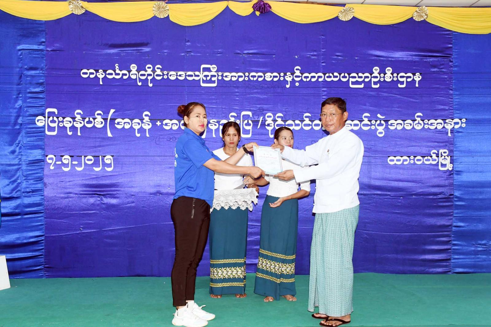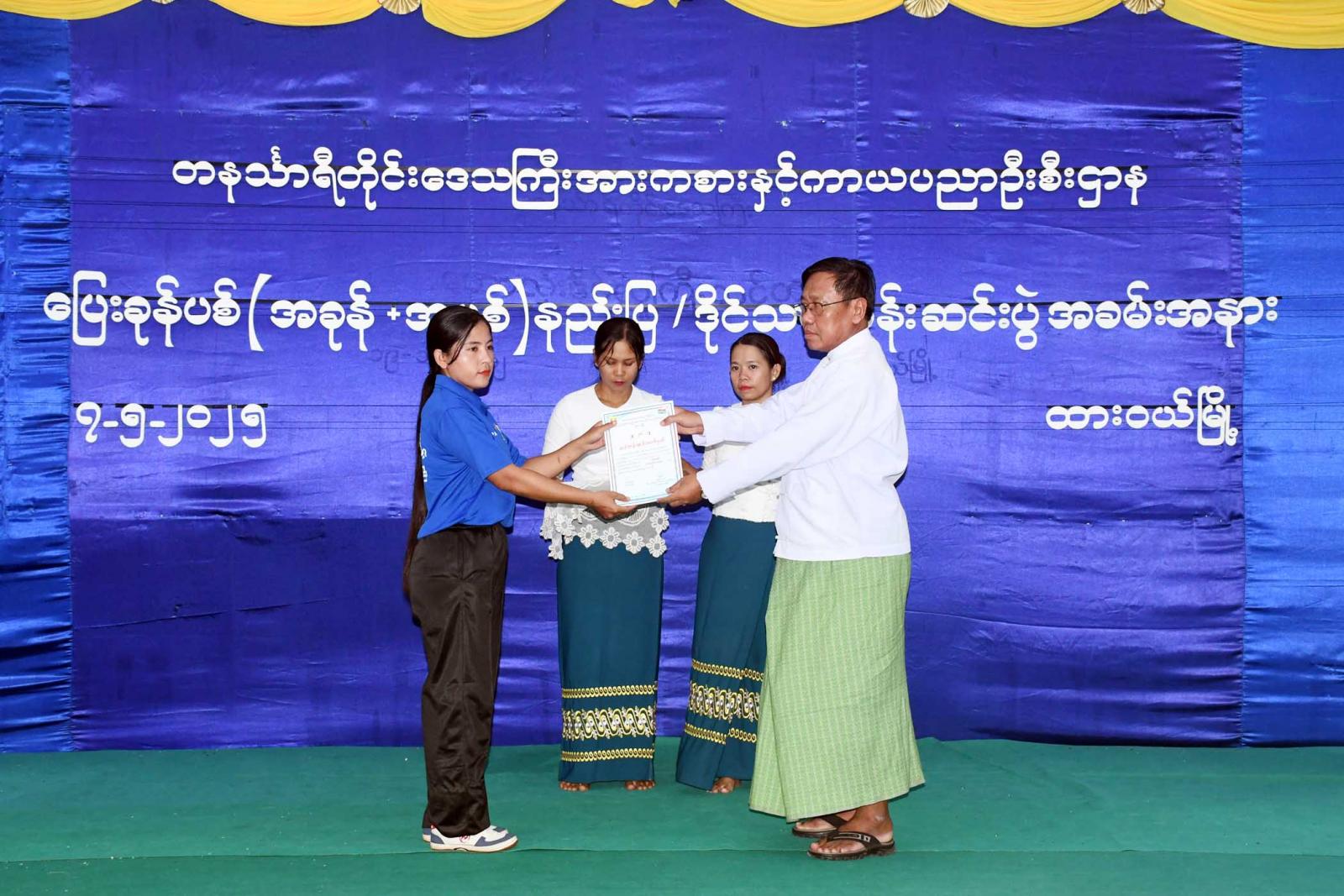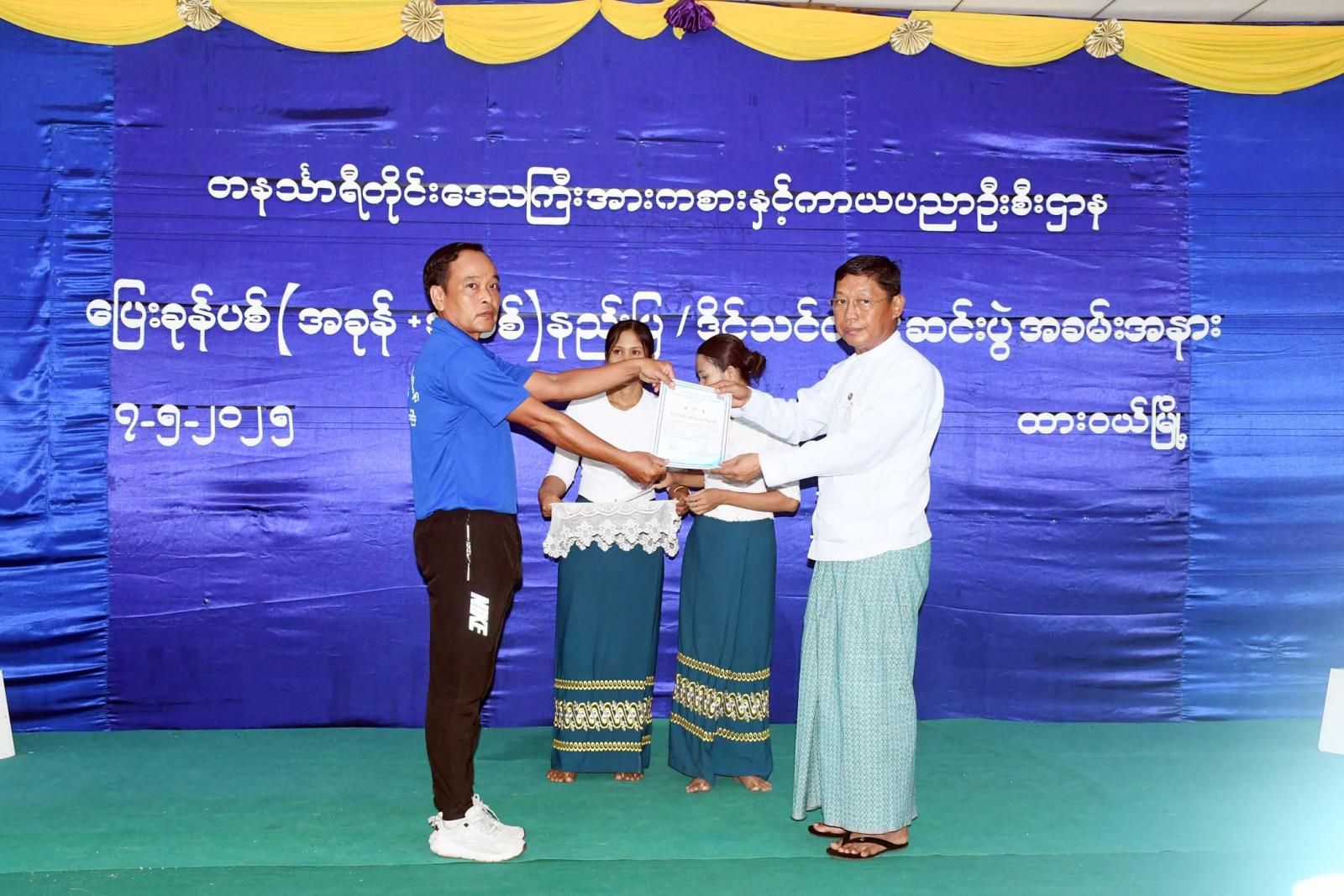 ဆက်လက်၍ တိုင်းဒေသကြီး အားကစားနှင့်ကာယပညာဦးစီးဌာန၊ ညွှန်ကြားရေးမှူး ဦးစိုးမိုးနိုင်က ပြေးခုန်ပစ်နည်းပြဆရာအား ဂုဏ်ပြုလက်ဆောင်ချီးမြှင့်ပေးအပ်ကာ တိုင်းဒေသကြီးအစိုးရအဖွဲ့ လူမှုရေးရာဝန်ကြီးက သင်တန်းသားများနှင့် စုပေါင်းမှတ်တမ်းဓာတ်ပုံ ရိုက်ကူးကြကြောင်း သတင်းရသည်။