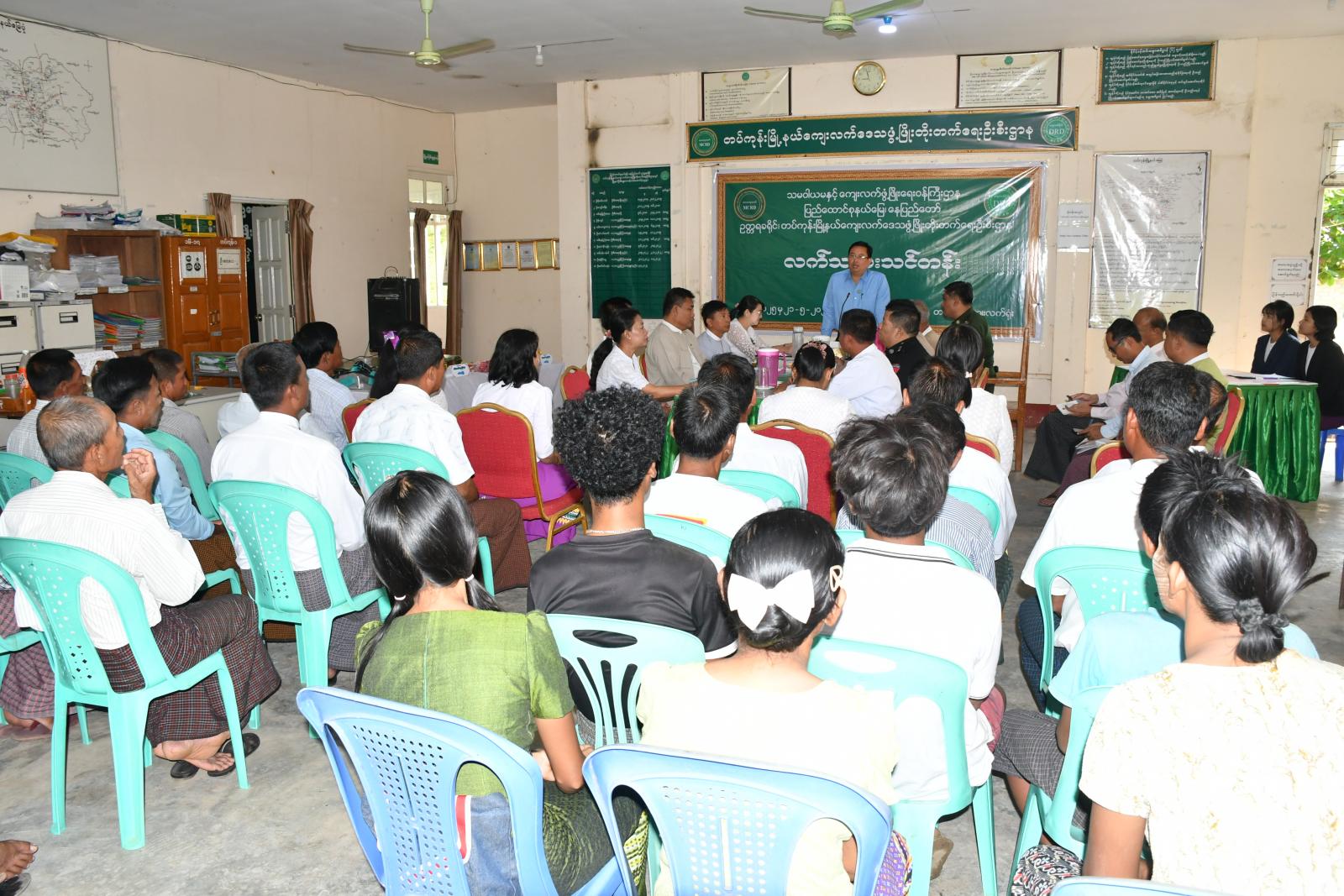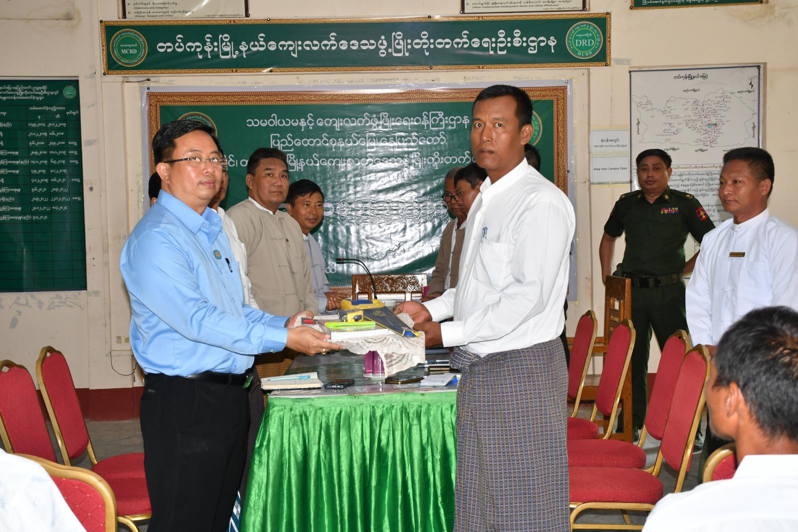 ထို့နောက် နေပြည်တော်ကောင်စီဝင် ဦးဇေယျာလင်း၊ ခရိုင်ဦးစီးမှူး ဒေါ်မြင့်မြင့်အေးနှင့် တာဝန်ရှိသူများက သင်တန်းသား၊ သင်တန်းသူများအား လွှ၊ ရေပေါ်စက်အပါဝင် သင်ထောက်ကူပစ္စည်းများ ပေးအပ်ခဲ့ပြီးနောက် သင်တန်းသား၊ သင်တန်းသူများ လက်တွေ့လက်သမားပညာရပ်များ ဆောင်ရွက်နေမှုများအား ကြည့်ရှုအားပေးကာ သင်တန်းတွင် ကျေးရွာငါးရွာမှ သင်တန်းသား၊ သင်တန်းသူ ၂၀ ဦး တက်ရောက်၍ သင်တန်းကာလမှာ မေ ၇ ရက်နေ့မှ ၂၁ ရက်နေ့အထိ လက်တွေ့သင်ကြားမည်ဖြစ်ကြောင်း သိရသည်။