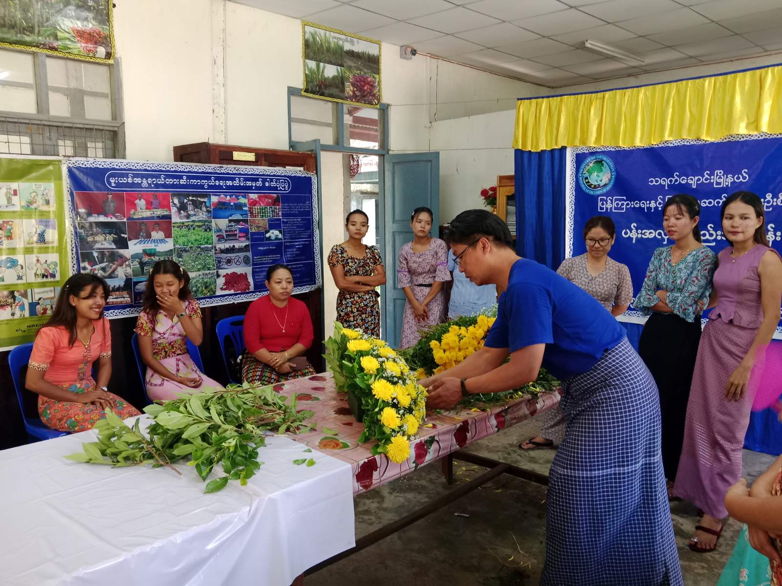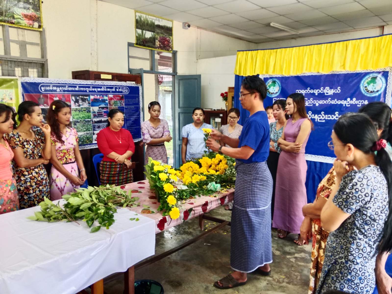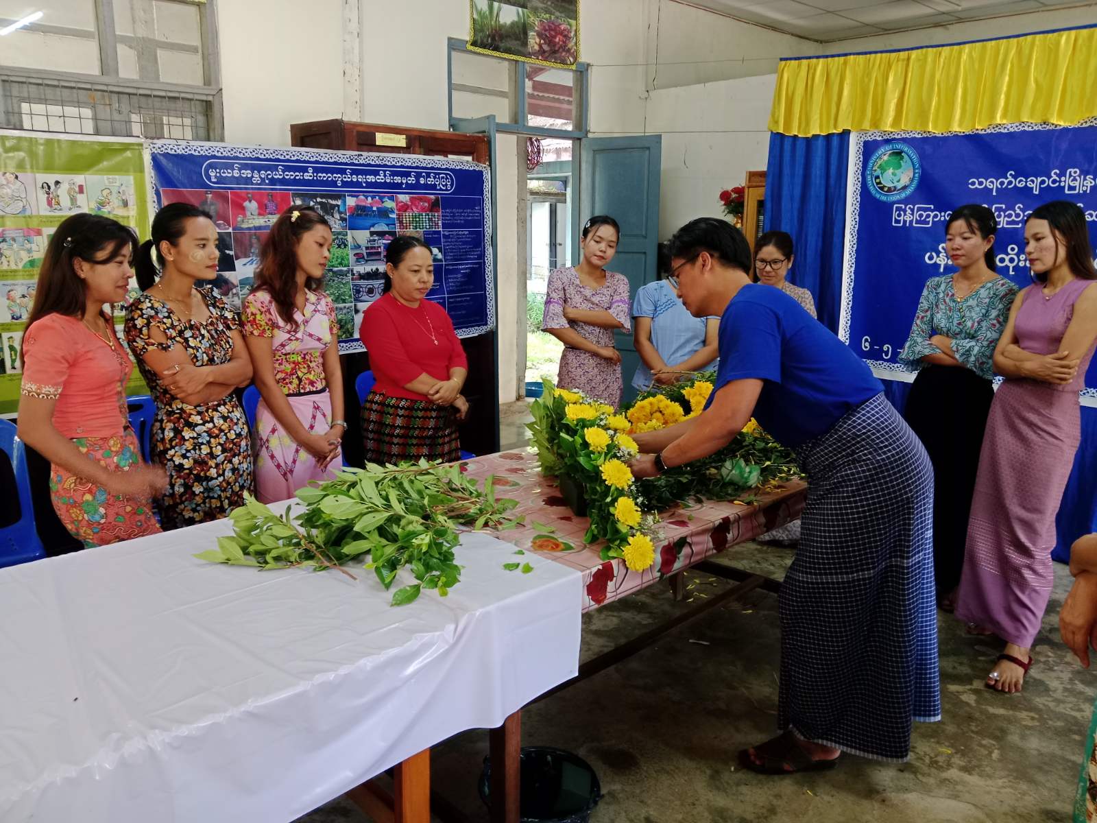 ရှေးဦးစွာ သရက်ချောင်းမြို့နယ်၊ ပြန်ကြားရေးနှင့်ပြည်သူ့ဆက်ဆံရေးဦးစီးဌာနမှ ဦးစီးအရာရှိ ဒေါ်နန်းခလိုက်ရှုက သင်တန်းသူများအား ပန်းအလှထိုးနည်းသင်တန်းဖွင့်လှစ်ရခြင်းနှင့် ပတ်သက်၍ ရှင်းလင်းပြောကြားခဲ့ပြီး သင်တန်းနည်းပြဆရာ ဦးကျော်ဇင်လတ်က သင်တန်းသူများအား လက်တွေ့ပြသဆောင်ရွက်ပေးတာကို စိတ်ဝင်စားစွာ လေ့လာမှတ်သားကြရန်လိုကြောင်း ပြောကြားခဲ့ပြီးနောက် ပန်းအလှထိုးနည်း အမျိုးမျိုးတို့ကို လက်တွေ့ပြသသင်ကြားပေးခဲ့ကြောင်း သင်တန်းသူများကလည်း ပန်းအလှထိုးနည်း အမျိုးမျိုးအား သင်ကြားပေးရာတွင် စိတ်ဝင်စားတွင် ကြည့်ရှုလေ့လာခဲ့ကြောင်း သတင်းရသည်။