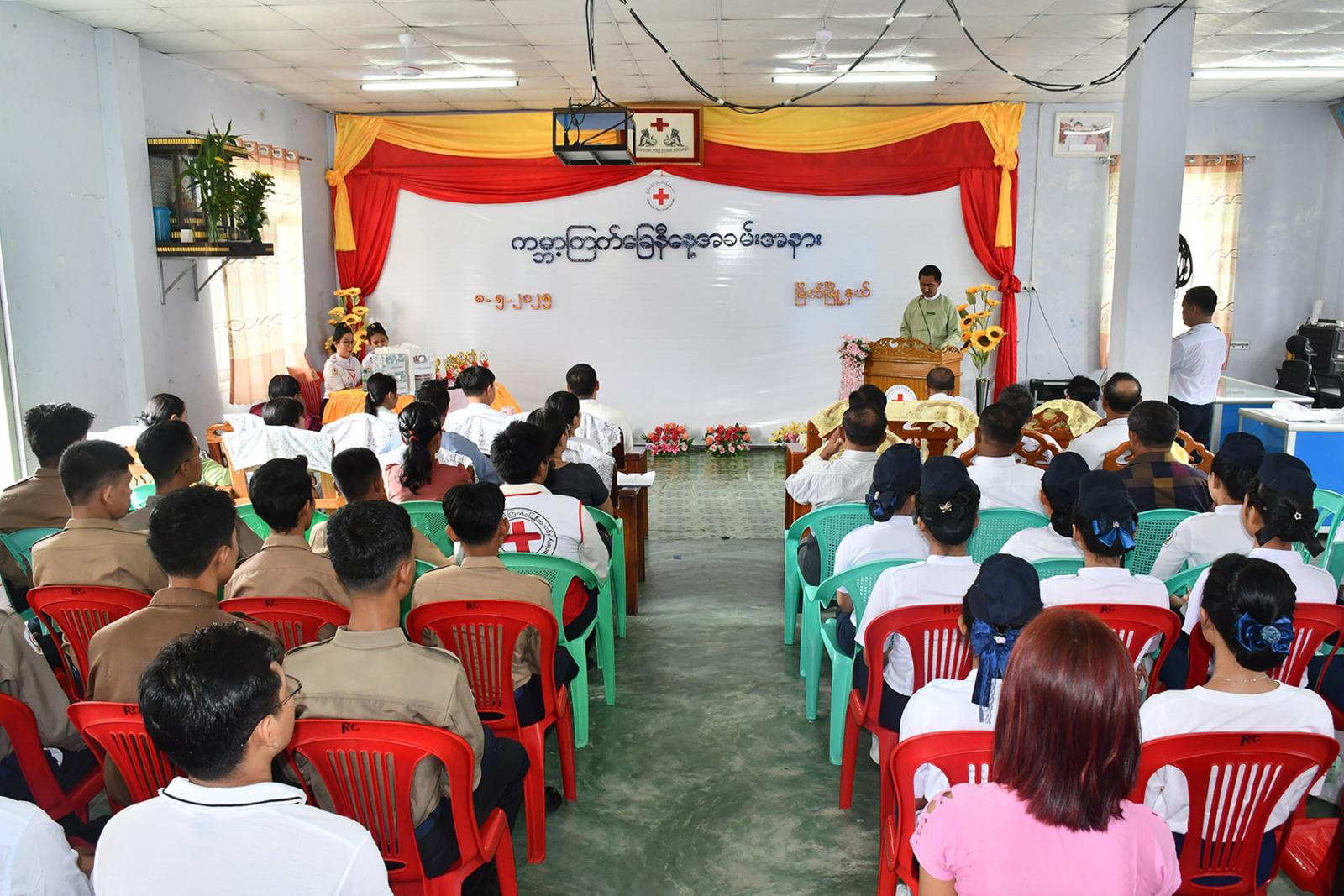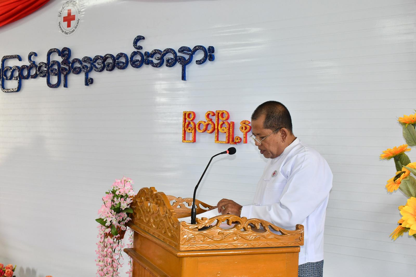 ရှေးဦးစွာ မတ်လ(၂၈)ရက်နေ့တွင် အလွန်ပြင်းထန်သည့် မြေငလျင်လှုပ်ခတ်မှုကြောင့် အသက်ဆုံးရှုံးသွားရသူများနှင့် ပျက်စီးဆုံးရှုံးခဲ့မှုများအတွက် ဝမ်းနည်းကြောင်း အထိမ်း အမှတ်အဖြစ် အခမ်းအနားတက်ရောက်လာကြသူများက မတ်တပ်ရပ်၍ တစ်မိနစ် ငြိမ်သက်ကြသည်။ ထို့နောက် မြို့နယ်စီမံအုပ်ချုပ်ရေးအဖွဲ့ဥက္ကဋ္ဌ ဦးပြည်ဟိန်းကျော်က ကမ္ဘာ့ကြက်ခြေနီနေ့ ဂုဏ်ပြုအမှာစကားပြောကြားသည်။ ဆက်လက်၍ ကမ္ဘာ့ကြက်ခြေနီနေ့အခမ်းအနားသို့ မြန်မာနိုင်ငံ ကြက်ခြေနီအသင်းဥက္ကဋ္ဌ ပါမောက္ခဒေါက်တာမျိုးညွန့်ထံမှ ပေးပို့သော သဝဏ်လွှာအား မြိတ်ခရိုင်ကြက်ခြေနီကြီးကြပ်မှုကော်မတီ ဒုဥက္ကဋ္ဌ ဦးမျိုးအောင်က ဖတ်ကြားခဲ့သည်။