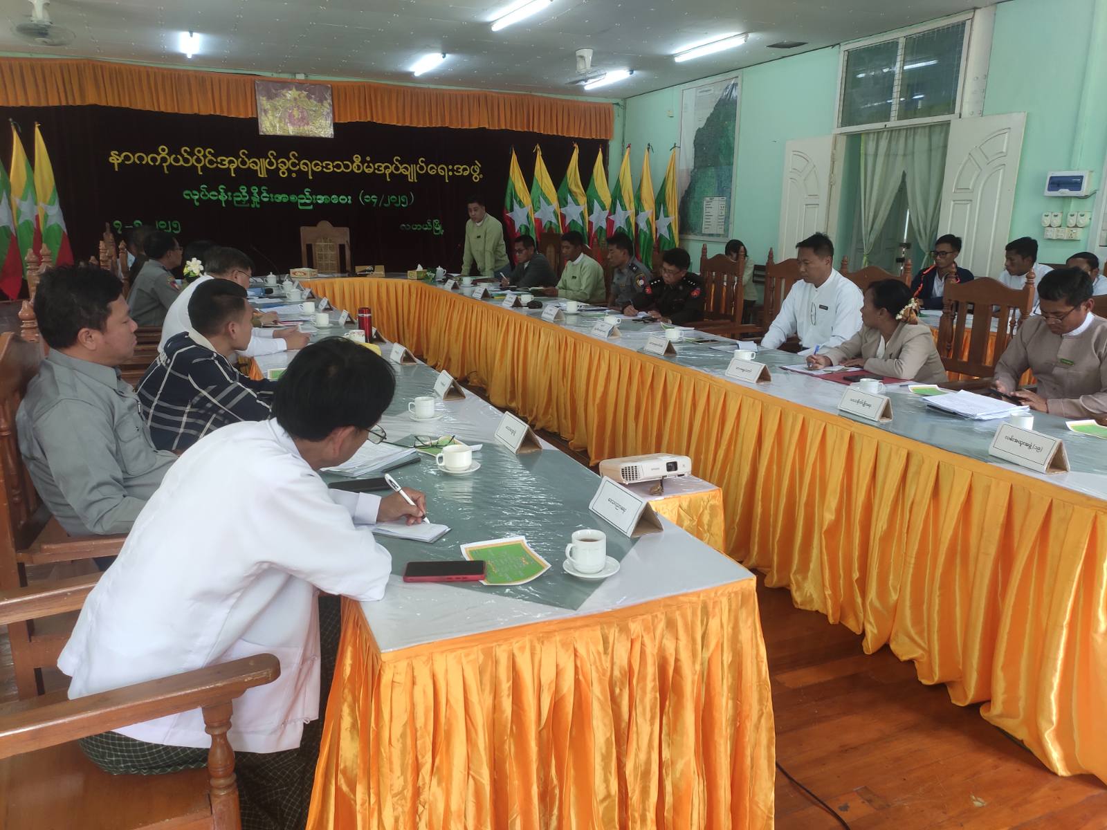 ဦးစွာယခင်အပတ်အစည်းအဝေး ဆုံးဖြတ်ချက်အပေါ် အကောင်အထည်ဖော်ဆောင်ရွက်မှုကို ဖတ်ကြားတင်ပြပါသည်။ ထို့နောက်နာဂဒေသစီမံအုပ်ချုပ်ရေးအဖွဲ့ အတွင်းရေးမှူး ဦးလင်းကိုကိုက အမှာစကားပြောကြားရာတွင် ဒေသဖွံ့ဖြိုးရေးလုပ်ငန်းများဆောင်ရွက်ရန် ခွင့်ပြုရန်ပုံငွေများကို လုပ်ထုံးလုပ်နည်းနှင့်အညီ တင်ဒါခေါ်ယူဆောင်ရွက်ကြရန်နှင့်တက္ကသိုလ်၀င်တန်းပြန်လည်ဖြေဆိုကြမည့် ကျောင်းသား/သူများ အဆင်ပြေစွာဖြေဆိုနိုင်ရေး ဌာနဆိုင်ရာများမှ ပူးပေါင်းဆောင်ရွက်ပေးကြရန်မှာကြားပါသည်။