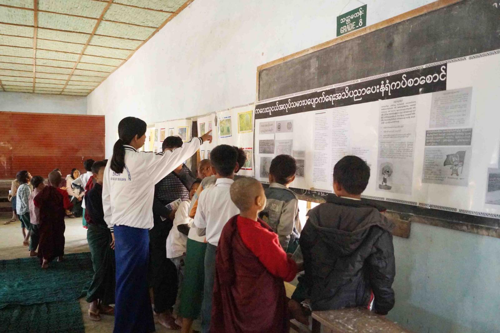 ရှေးဦးစွာ ရုပ်သံကျွမ်းကျင်-၃ ဦးကိုကိုနိုင်က ကျောင်းသား၊ ကျောင်းသူ (၁၃၃)ဦးတို့အား သဘာဝ ဘေးအန္တရာယ် ကြိုတင်ကာကွယ်ရေး၊ တွေ့ကြုံလာပါက လိုက်နာဆောင်ရွက်ရမည့် အချက်အလက်များကို လည်းကောင်း၊ စာဖတ်ခြင်း၏ အကျိုးကျေးဇူးများကို လည်းကောင် ရှင်းလင်းဆွေးနွေး ပြောကြားသည်။