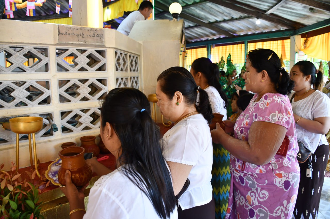 ညောင်ရေသွန်းလောင်းပွဲတွင် တိုင်းဒေသကြီးအစိုးရအဖွဲ့ဝင်၊ လူမှုရေးရာဝန်ကြီး ဦးသက်နိုင်၊ ခရိုင်နှင့်မြို့နယ် စီမံအုပ်ချုပ်ရေးအဖွဲ့ဥက္ကဋ္ဌများနှင့် အဖွဲ့ဝင်များ၊ ခရိုင်နှင့်မြို့နယ်အဆင့် ဌာနဆိုင်ရာများ၊ လူမှုရေးအသင်းအဖွဲ့များ၊ ဧည့်ပရိသတ်အပေါင်းတို့က ဒေဝါဝင်း၊ ရာဇာဝင်းများခြံရံ၍ ပြည်တော်အေးစေတီတော်အား လက်ယာရစ် (၃)ပတ်လှည့်လည်ပူဇော်ပြီး ပြည်တော်အေးစေတီတော်ရှိ ဗောဓိညောင်ပင်တွင် ညောင်ရေသွန်းလောင်း၍ ဗုဒ္ဓရုပ်ပွားတော်များအား ရေသပ္ပာယ်ပူဇော်ခဲ့ကြသည်။