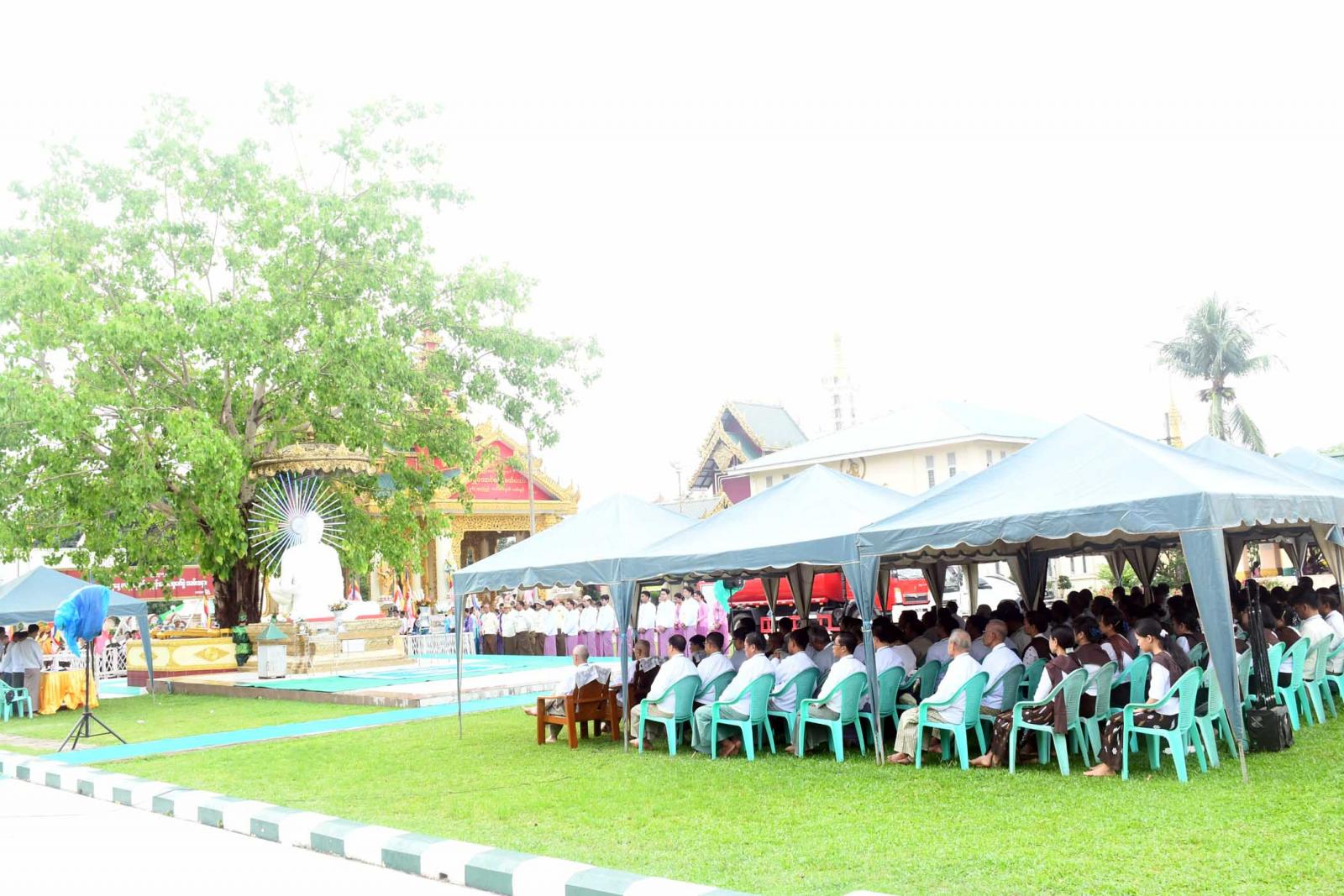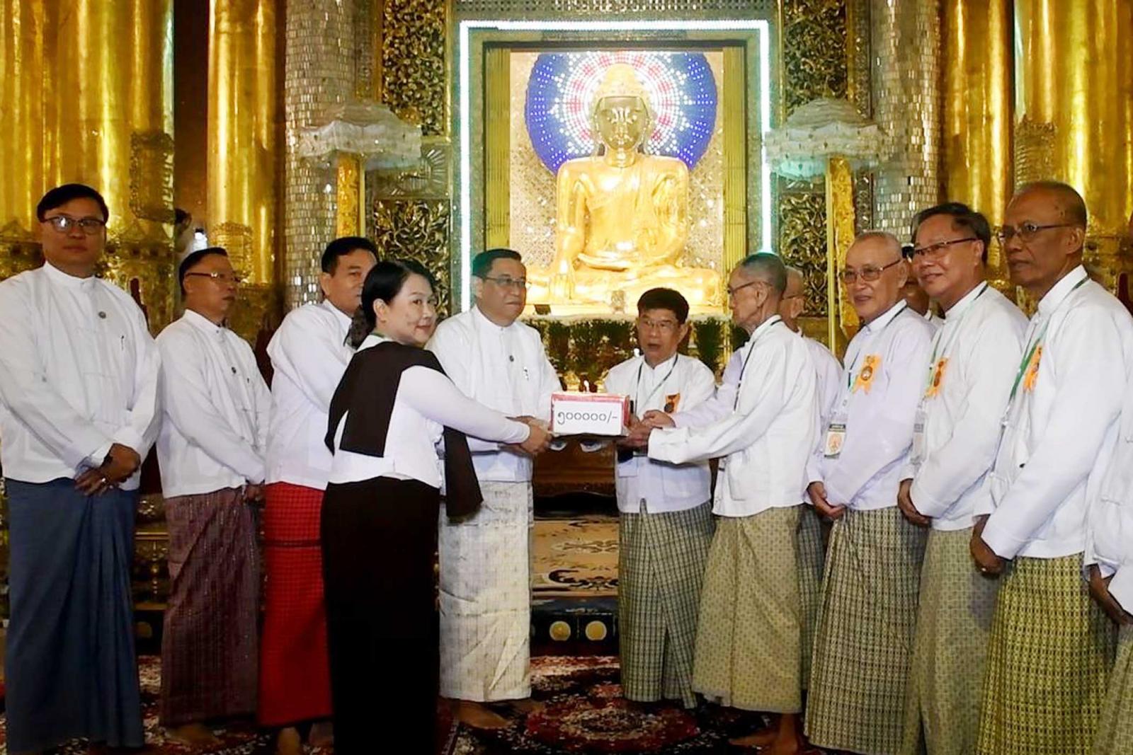 ရှေးဦးစွာတိုင်းဒေသကြီးဝန်ကြီးချုပ်ဦးမြတ်ကိုက လောကမာရ်ဇိန်ဘုရားကြီးဝင်းအတွင်း ကိန်းဝပ်စံပယ်တော်မူနေသော ဗုဒ္ဓရုပ်ပွားတော်မြတ်ကြီးအား ပန်း၊ ရေချမ်း၊ဆီးမီးကပ်လှူပူဇော်ပြီး “ကဆုန်လပြည့်(ဗုဒ္ဓနေ့)” အထိမ်းအမှတ်အဖြစ် အလှူတော်ငွေကျပ်(၅၀၀၀၀၀) အား လှူဒါန်းရာ ဘုရားကြီးဂေါပကအဖွဲ့က လက်ခံရယူသည်။