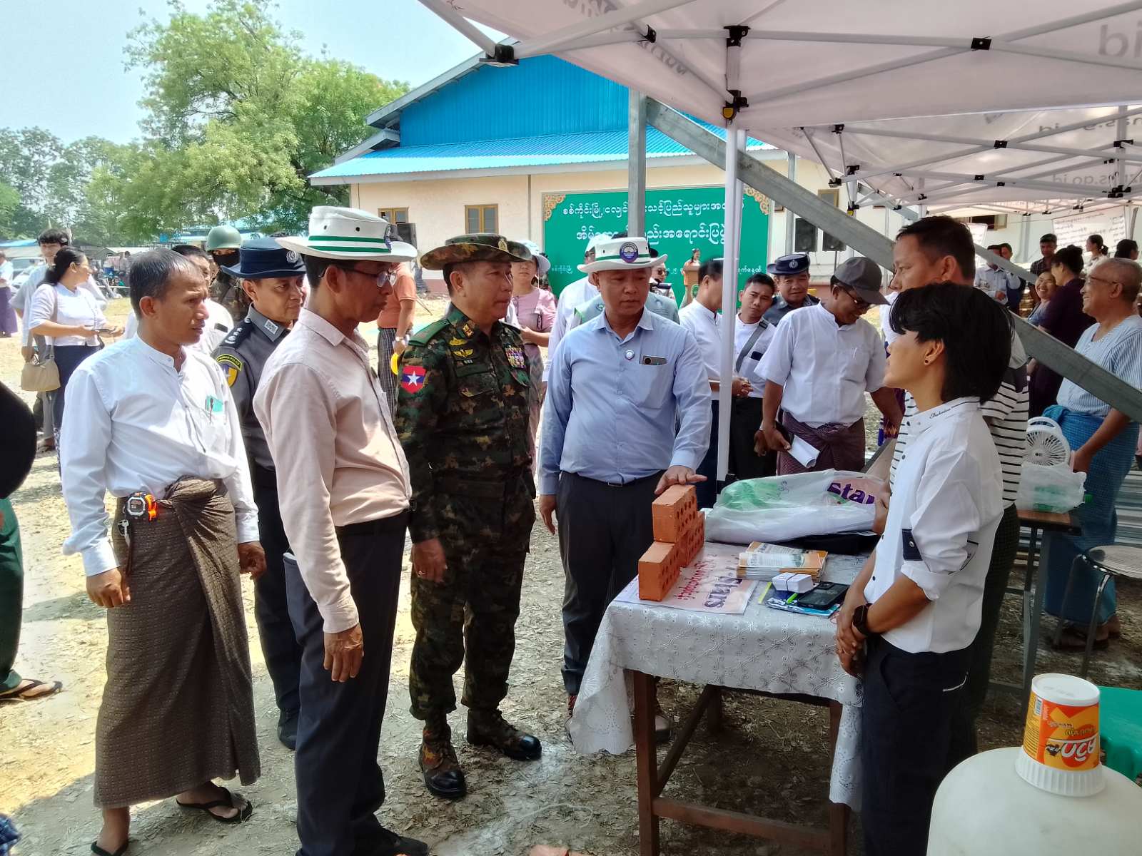 စစ်ကိုင်းတိုင်းဒေသကြီး၊ စစ်ကိုင်းမြို့၌ မန္တလေးငလျင်ကြီးကြောင့် နေအိမ်များ ပျက်စီးဆုံးရှုံးခဲ့ရသည့် ငလျင်ဘေးသင့်ပြည်သူများ ဈေးနှုန်းချိုသာစွာဖြင့် ဝယ်ယူနိုင်ရန်အတွက် အိမ်ဆောက်ပစ္စည်းများ အရောင်းပြပွဲ ဖွင့်ပွဲအခမ်းအနားကို မေလ (၁၂)ရက်၊ နံနက် (၁၀)နာရီအချိန်က စစ်ကိုင်းမြို့၊ နှစ်(၇၀၀) ဘောလုံးကွင်း၌ ကျင်းပပြုလုပ်သည်။